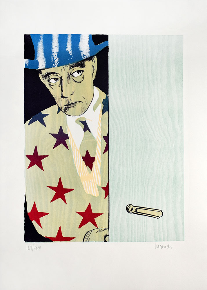 Number 163 of 200 numbered original lithographs in colors on laid paper, signed and dated (07) in lead by Robert Lucander below the illustration. Published by Tabor Presse Berlin 2007. Sheet dimensions: 59.4 x 42.0 cm. Dimensions illustration: 42.0 x 31.8 cm. Very good copy.