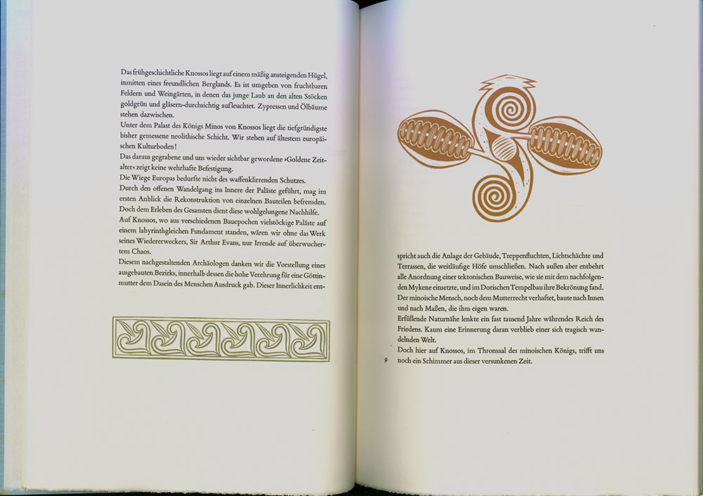 Weisz, Josef: Am Quell Kastalia. Griechenland, zeitfern – geistnah. [Signiert, mit 55 Original-Holzschnitten]. München, Selbstverlag Josef Weisz, 1962. 4°. 31 x 22 cm. 96 Seiten. Original-Leinenband mit Deckelillustration im Original-Pappschuber. Als Blockbuch gebunden.