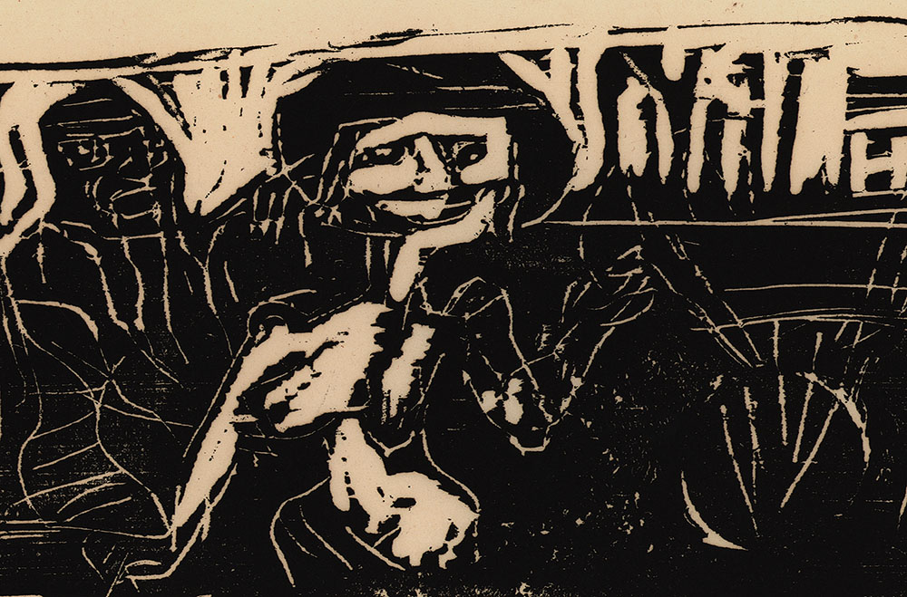 Original woodcut on thin, slightly darker handmade paper, titled and signed by Hubert Berke in lead below the image. One of 100 copies, published in 1947 by Michael Hertz, Bremen. Printed by Hans Krohn, Bremen. Sheet fixed at two points behind a simple passe-partout. Sheet dimensions: 30.0 x 40.0 cm. Dimensions illustration: 12.0 x 30.8 cm. Very good copy.