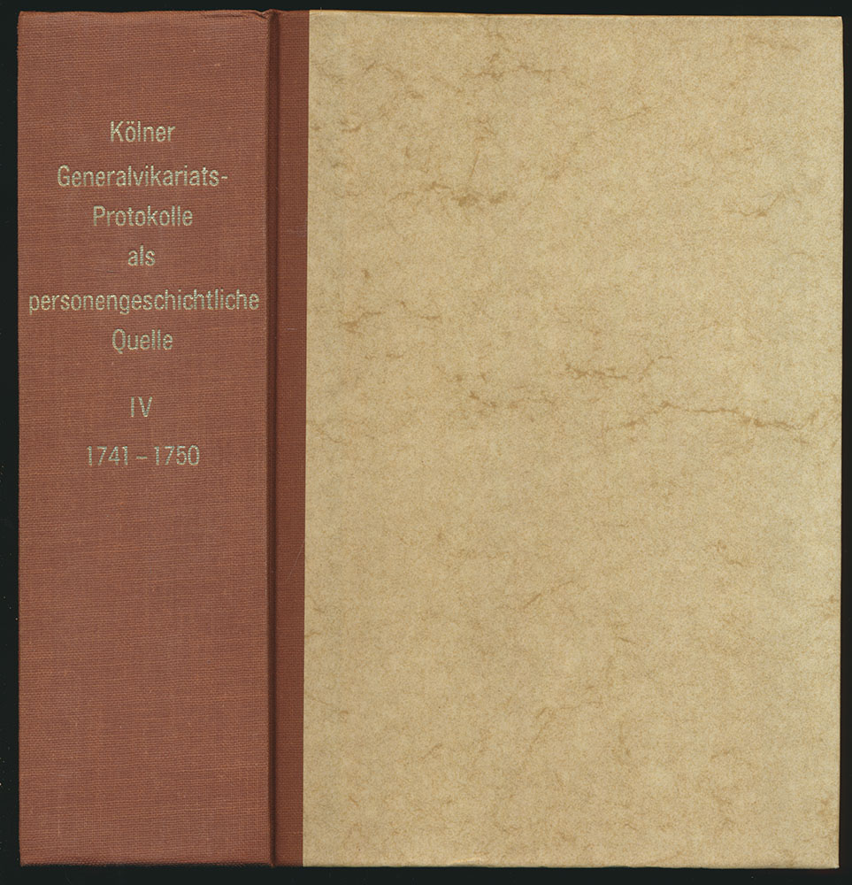 Deitmer, Hermann: Die Kölner Generalvikariatsprotokolle als personengeschichtliche Quelle. Band IV: Die Nicht-Kleriker in den Protokollen von 1741 bis 1750. Bearbeitet von Hermann Deitmer S.J. Köln, Westdeutsche Gesellschaft für Familienkunde, 1979. 8°. 21 x 15 cm. 1024 Seiten. Halbleinenband mit goldgeprägtem Rückentitel. (= Veröffentlichungen der Westdeutschen Gesellschaft für Familienkunde e.V., Sitz Köln, Neue Folge Nr. 12).