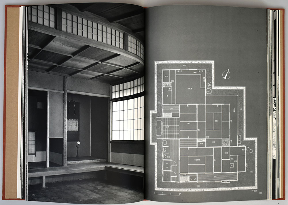 Nakamura, Sotoji: Sukiya kenchiku sekoshu. [Nakamura Sotoji Collection of Sukiya Architecture Construction / Sammlung von Sukiya-Architekturkonstruktionen von Nakamura Sotoji]. Tokyo, Tankosha Verlag, Showa 53 [1978]. Groß-4°. 38 x 27 cm. 225 Seiten. Original-Leinenband in illustriertem Original-Pappschuber.