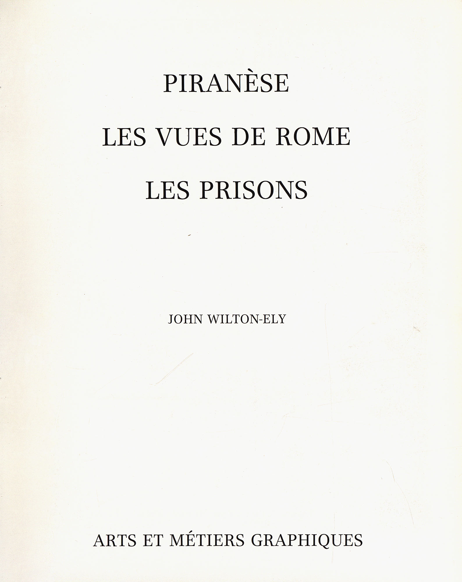 Piranesi, Giovanni Battista – Wilton-Ely, John: Piranèse. Les vues de Rome, les prisons. Paris, Arts et Métiers Graphiques, 1979. 4°. 32 x 24 cm. 303 (1) Seiten. Original-Leinenband mit Original-Schutzumschlag.