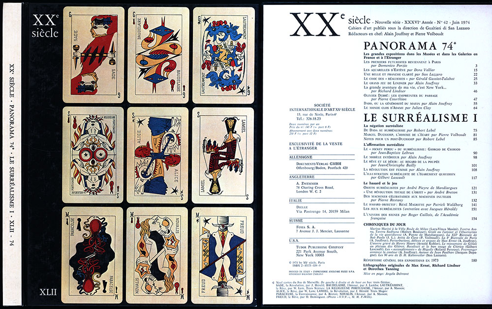 Porzio, Domenico – Vallier, Dora – Lazzaro, San u.a.: XXe siècle. Panorama 74. Le Surréalisme I. [Mit 3 Original-Lithografien / with 3 original lithographs]. Paris, XXe siecle, 1974. 4°. 32 x 25 cm. Nicht durchgehend paginiert. Gebundener Original-Pappband. (= XXe siècle, Nouvelle série – XXXVI Année – No. 42).
