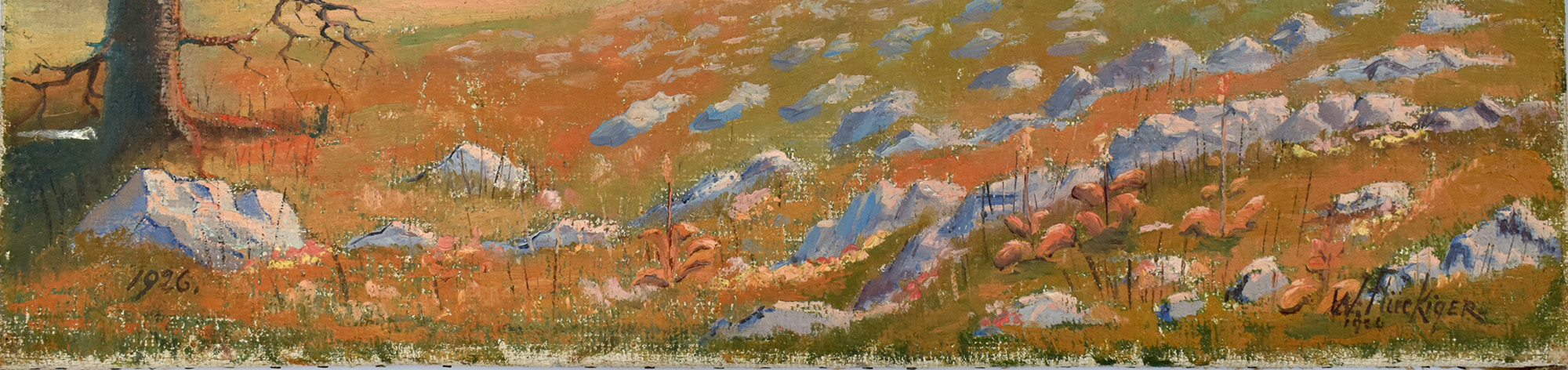 Flückiger, Willy: Expressive Landschaft. 1926. [Signiertes Ölgemälde / Signed oil painting]. (Willy Flückiger, geboren 1912 in der Schweiz. Schweizer Maler).