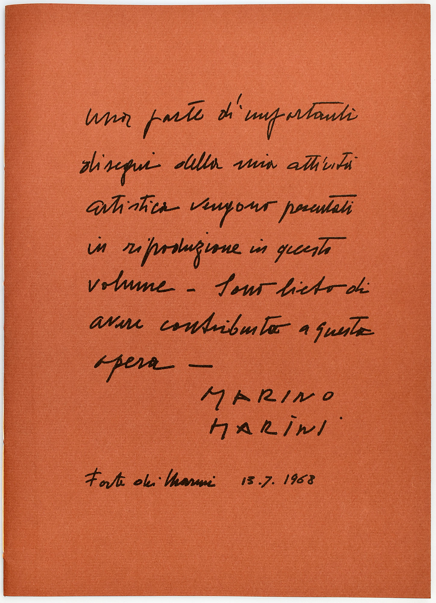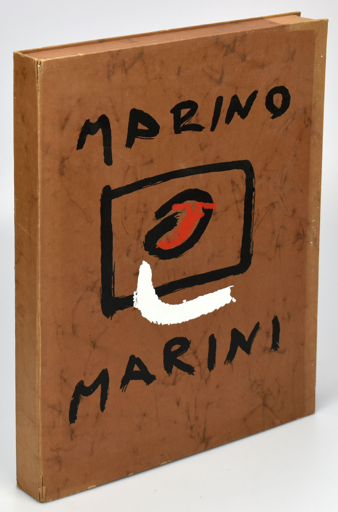 Marini, Marino: Marino Marini. Werkausgabe. Einleitender Text Werner Haftmann. Bremen, Carl Schünemann Verlag/Verlag der Dietz Offizin, 1968. 2°. 40 x 31 cm. 8 Blatt starkes Beiheft und 62 (von 63) lose Tafeln in illustrierter Original-Pappkassette. Beiheft als fadengeheftete Original-Broschur.