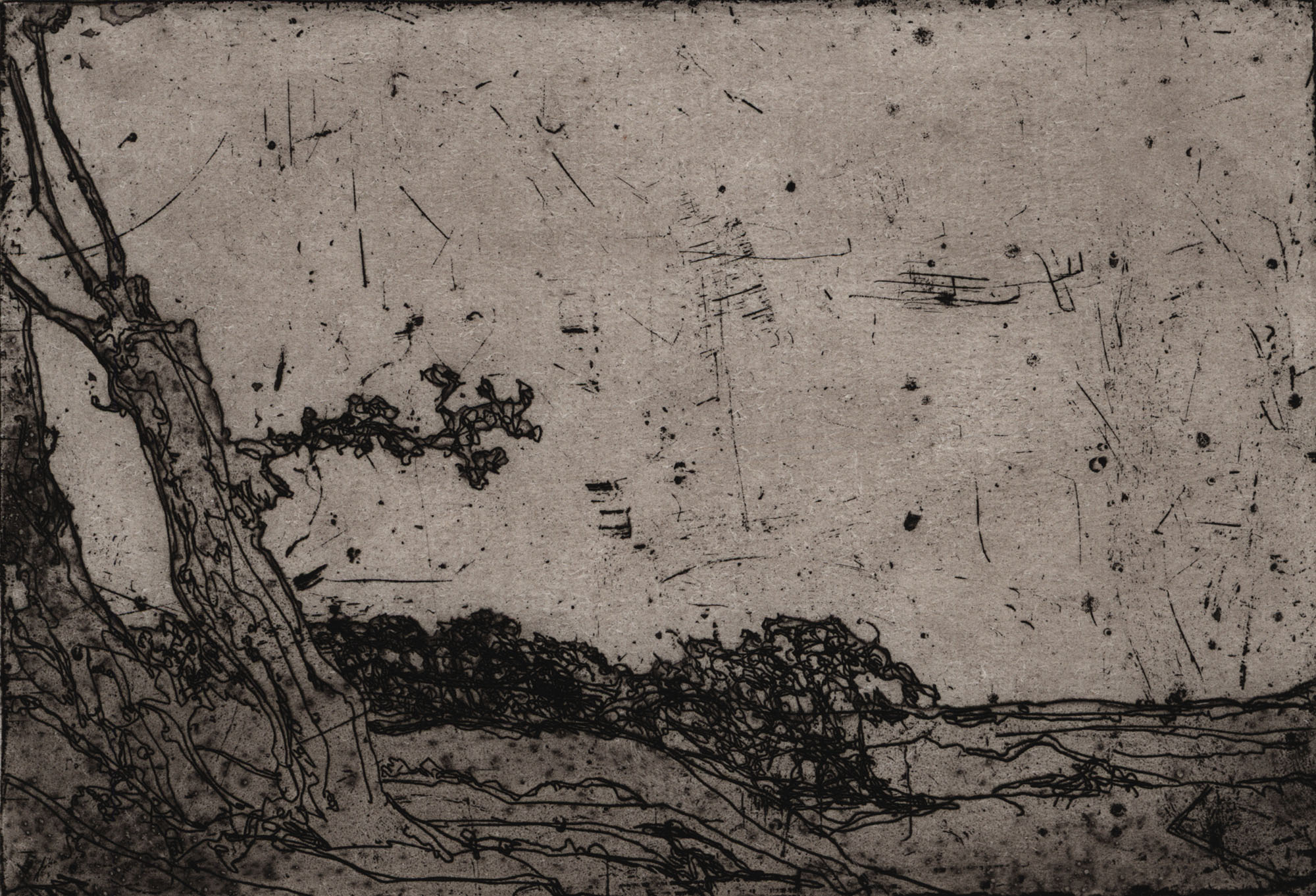 Original-Radierung (Strich- und Flächenätzung auf Zinkplatte), hier einer von nur 6 Probedrucken auf weißem Japanbütten. Von Horst Janssen unterhalb der Abbildung in Blei signiert und bezeichnet „P“ (Probedruck). Blatt aus dem Mappenwerk „Landschaften“, herausgegeben vom Verlag Galerie Brockstedt, Hamburg 1971. Druck durch Hartmut Frielinghaus. Werkverzeichnis: Frielinghaus Nr. 1970/34. Gäßler 10/4. Maße Blatt: 25,0 x 38,5 cm. Maße Abbildung: 14,8 x 21,6 cm. Blatt an zwei Punkten hinter Passepartout montiert. Sehr gutes Exemplar.