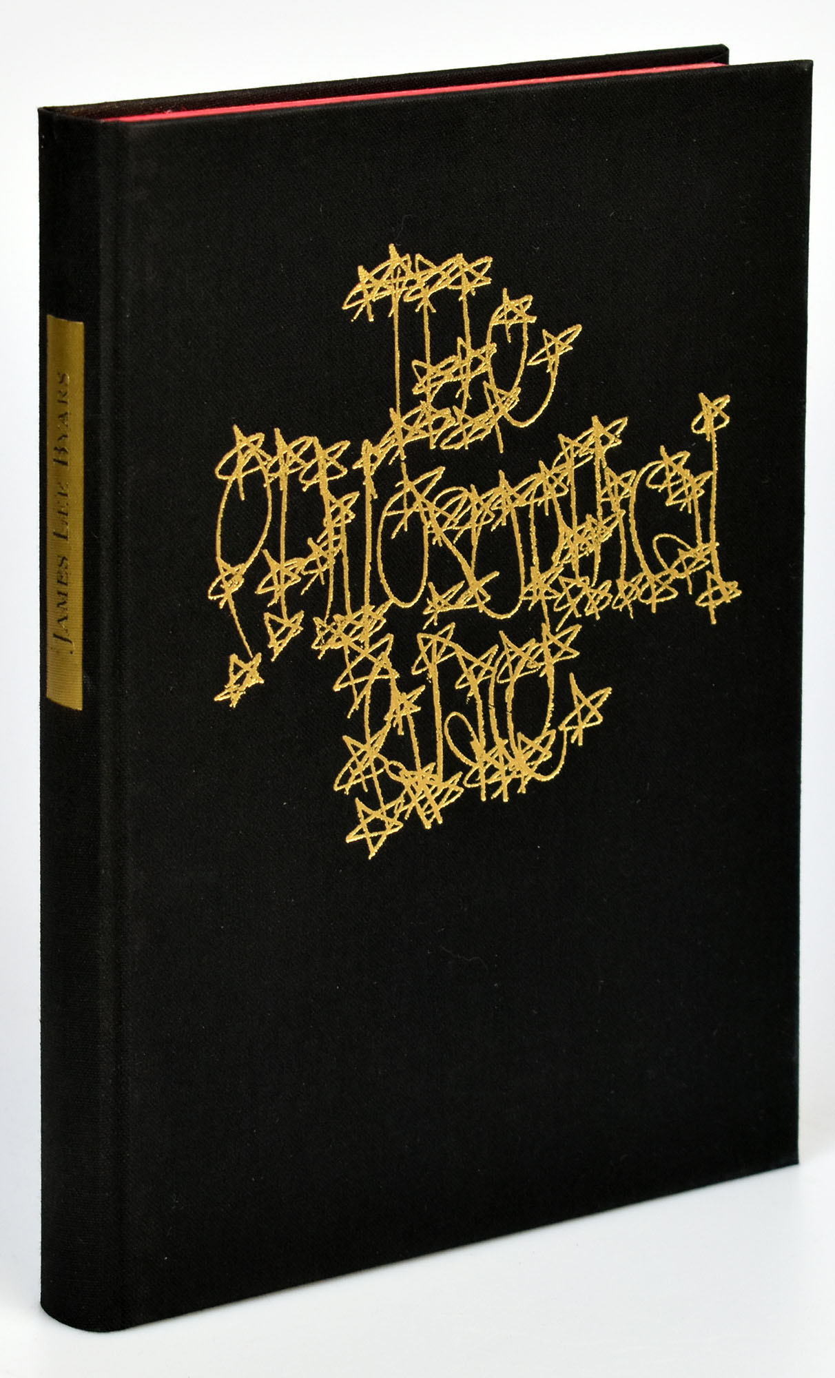 Byars, James L. – Harten, Jürgen (Hrsg.): The philosophical palace. Palast der Philosophie. Düsseldorf, Selbstverlag der Kunsthalle, 1986. 4°. 25,5 x 18 cm. 148 Seiten. Original-Leinenband mit Goldprägung und rotem Kopfschnitt in goldenem Original-Pappschuber.