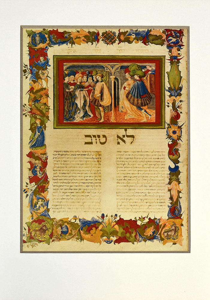 Faksimileausgabe. Nummer 332 von 699 nummerierten Exemplaren. Mit 4 faksimilierten Miniaturen jeweils unter Passepartout als Faksimileteil sowie jeweils schwarz-weiß Abbildungen derselben mit zugehörigem Kommentar im Begleitband. Beiliegend das zugehörige Zertifikat (personalisiert). Faksimiliert wurden aus der Biblioteca Apostolica Vaticana „Der Liebesvogel“ (Codex Pal. lat. 1632, fol. 1), „Über die Freundschaft“ (Codex Pal. lat. 1523, fol. 1r), „Hochzeitsbild“ (Codex Ross. 555, folg. 220v) und „Der Liebesgarten“ (MS Harley 4425, fol. 12v), jeweils koloriert und vergoldet. Bildgrößen in zwei Fällen 31 x 22,5 cm, die weiteren 29 x 19,5 cm und 29 x 20 cm; Passepartout jeweils 42 x 29 cm. Neuwertiges Exemplar.