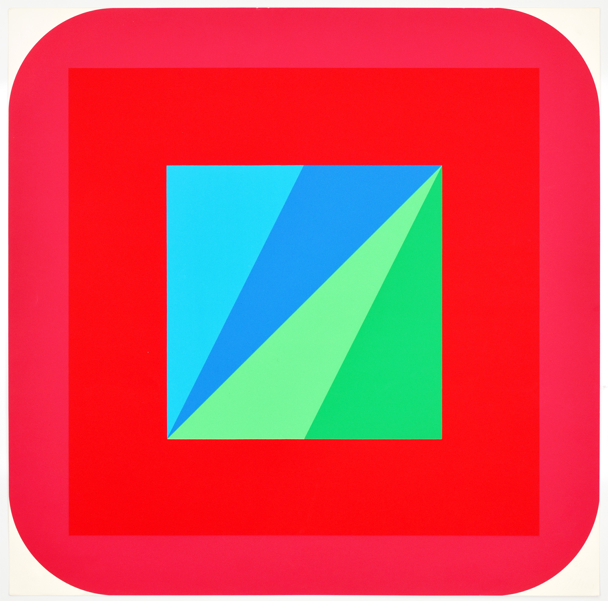 Pfahler, Georg Karl: Konkrete Komposition in Rot-, Blau- und Grüntönen. [1970]. [Signierter Original-Siebdruck / signed original screenprint]. (Georg Karl Pfahler, geboren am 8. Oktober 1926 in Emetzheim, gestorben am 6. Januar 2002 ebenda. Studium ab 1950-54 an der Kunstakademie Stuttgart bei Willi Baumeister, Manfred Henninger, Karl Hils und Gerhard Gollwitzer).