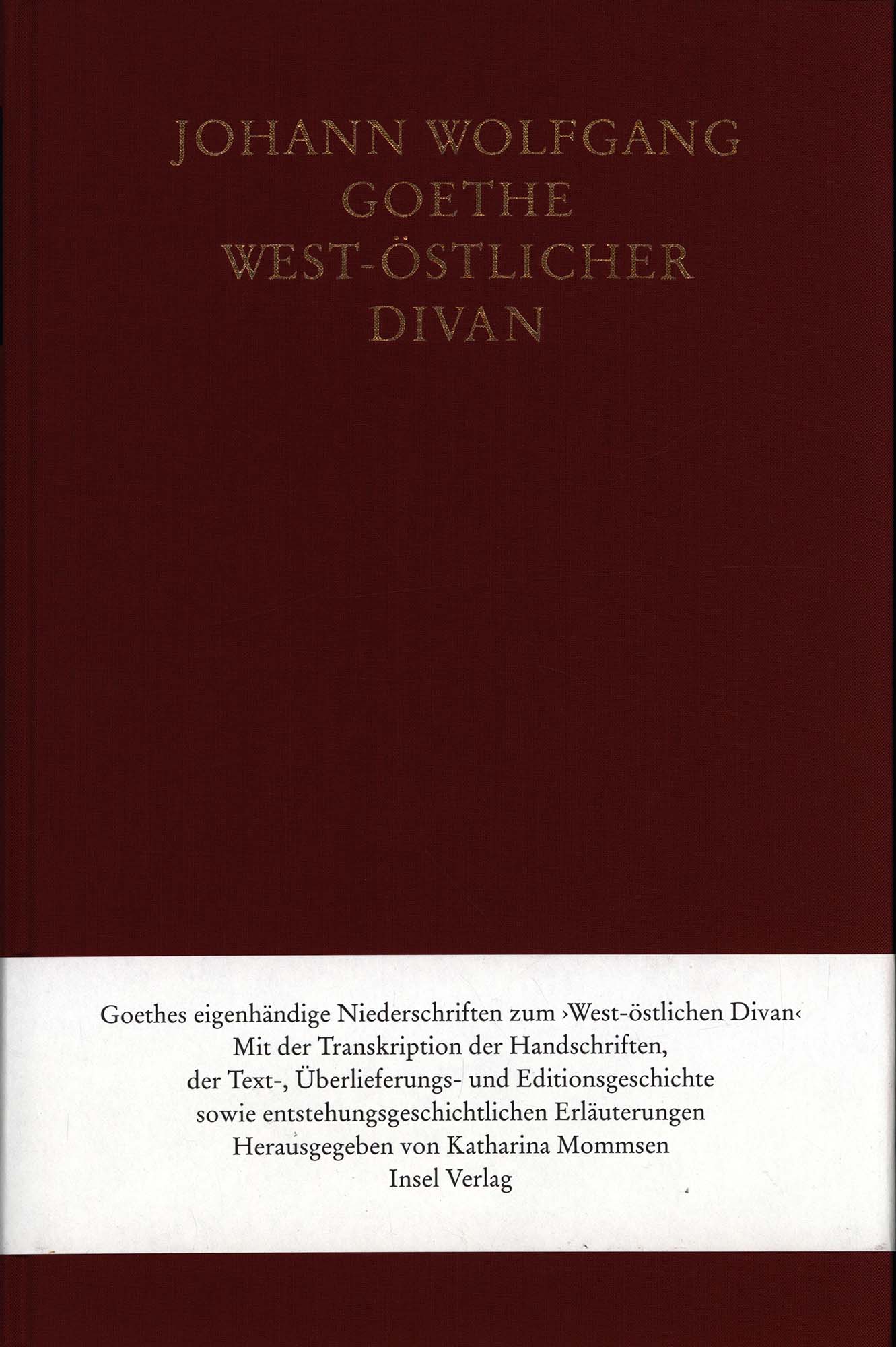 Goethe, Johann Wolfgang von – Mommsen, Katharina (Hrsg.): West-östlicher Divan. Eigenhändige Niederschriften. Frankfurt am Main/Leipzig, Insel Verlag, 1998. 4°. 34,5 x 23,5 cm. XXIV Seiten, [123] Blatt, 288 Seiten. Original-Leinenband mit Original-Bauchbinde.