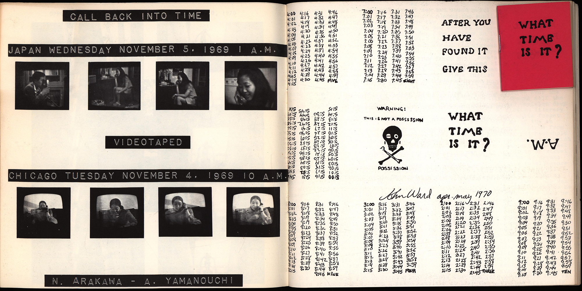 Künstlerbuch in englischer Sprache mit Beiträgen von Künstlern, die mit Chicago und dem Art Institute of Chicago verbunden waren. Zu den Künstlern gehören: James Zanzi, Robert James Guthridge, Orwett Echer, Joe Cavalier, Lee Kehrein, Teresa Burga, Gary Perkins, Jim Doring, John T. Celio, Fred Nagelbach, Frederick Paul Sperry, Allyn Yamaneuchi, Andrea Kalish, Joe Cavalier, John Ward, Andy Brady, Olaf Borge, Roger Welch, Martin Prekop, John Orentlicher, Frederick P. Sperry, Schwester Mary Connors, Peter Davies. Mit einer Einleitung bzw. Erklärung „Diese Publikation soll die Form einer freien Sensibilität präsentieren, einer Sensibilität, die nach Qualitäten der Erfindung sucht, die die Zwänge kommerzieller Inhalte außer Acht lassen. Diese Publikation ist eine Antwort und möchte eine solche Antwort initiieren. Sie zielt darauf ab, Kommunikation und Austausch zwischen Künstlern zu fördern. Interessierte Personen schreiben an James Zanzi, c/o The School of the Art Institute of Chicago“ – Verlagserklärung. Enthält das eingeheftete kleine Künstlerbuch „What Time Is It?“ von John Ward. Buch mit leichten Gebrauchsspuren, wenig berieben, wenig fleckig, auf hinterem Innendeckel Besitzerstempel. Insgesamt gutes bis sehr gutes Exemplar.