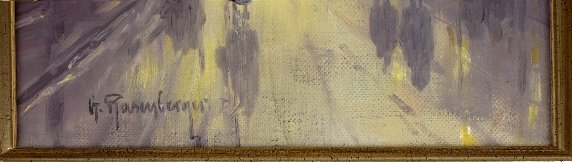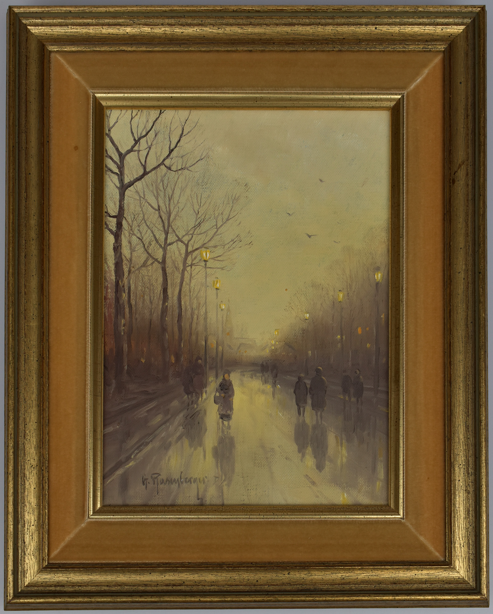 Rasenberger, Straßenszene am Abend. [Gemälde, Öl auf Leinwand].