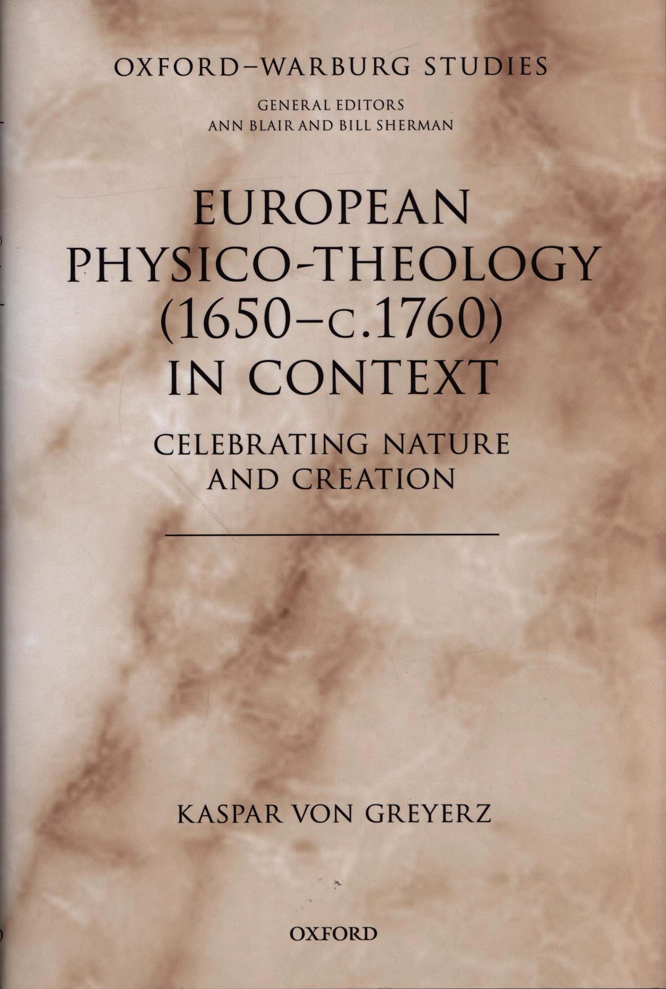 Greyerz, Kaspar von: European physico-theology (1650-c. 1760) in context. Celebrating nature and creation. Oxford und New York, NY, Oxford University Press, 2022. 8°. 24 x 17 cm. x, 300 Seiten. Original-Leinenband mit Original-Schutzumschlag. (Oxford Warburg Studies).
