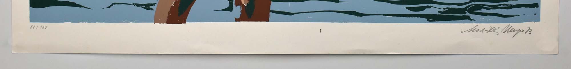 Meyer, Strandszene. [19]73. [Signierte Original-Farblithografie].