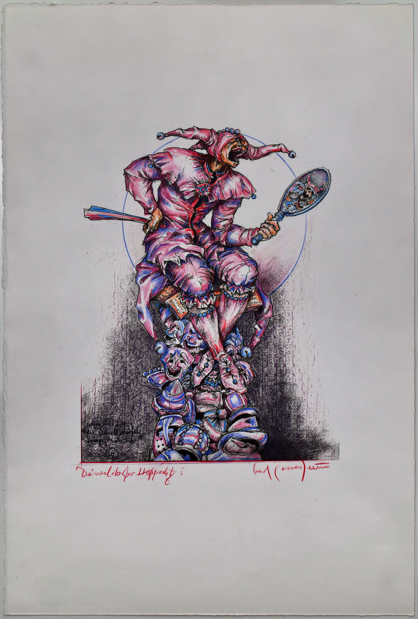 Gerresheim, Bert: Düsseldorfer Hoppeditz I. [Signierte Original-Offsetlithografie, koloriert / signed original offset lithograph, colored]. (Bert Gerresheim, geboren am 8. Oktober 1935 in Düsseldorf, gestorben am 16.07.2025 ebenda. Studium 1956 bis 1960 an der Düsseldorfer Kunstakademie bei Otto Pankok, zusammen mit Günther Uecker und Germán Becerra. Bildhauer, Grafiker und Pädagoge).