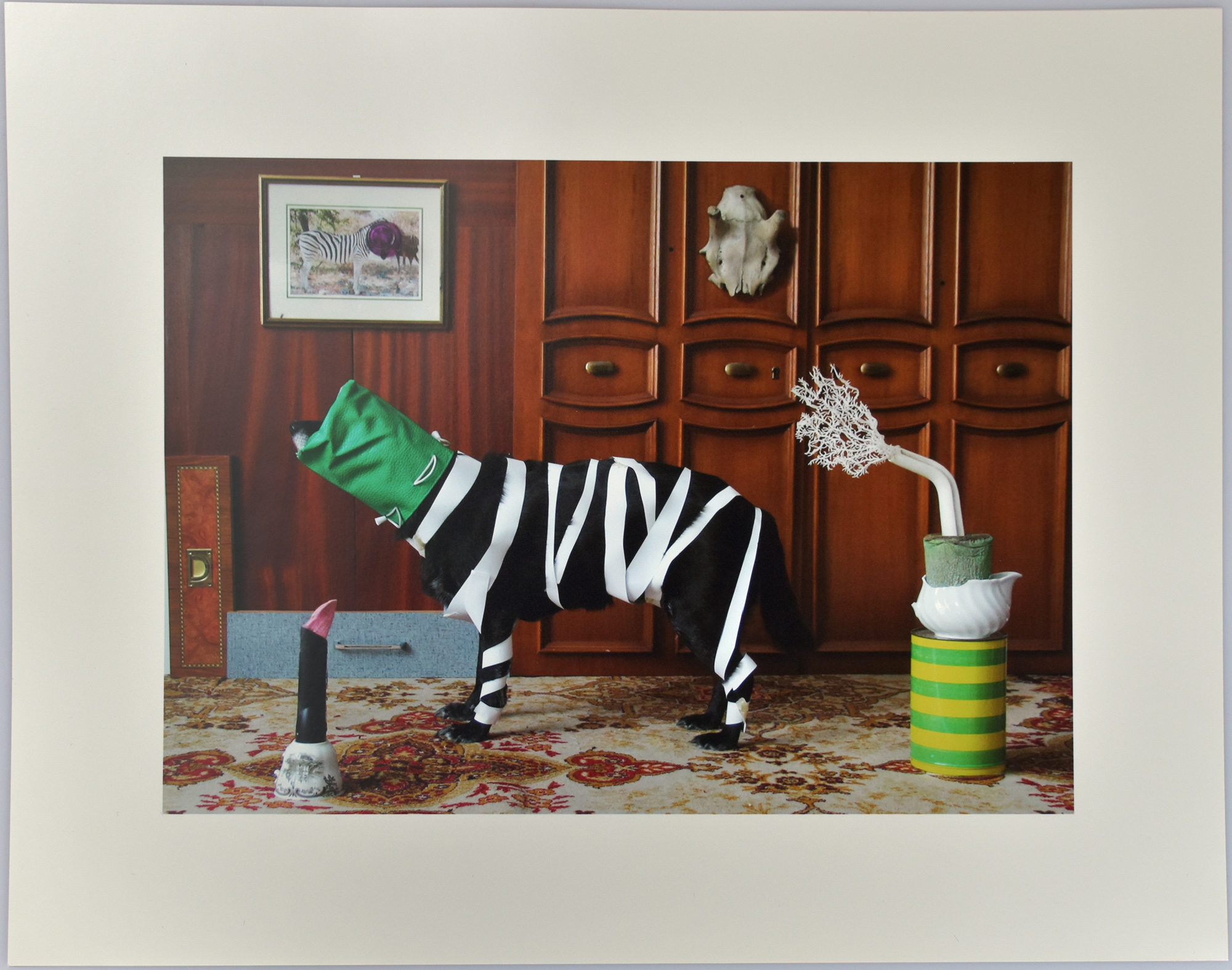 3 original color photographs, C-prints on Ultra Endura by Kodak, produced by Foto Company Altona, Hamburg. With a typographic description on the verso and signed in lead by Thorsten Brinkmann. Of the six works in the portfolio, three are included here: ‚Ern del Bär‘; ‚Der Klassiker Fourleg‘; and ‚Das seltene Zebrund‘ (The Rare Zebrund), in an illustrated half-linen folder with the publication Portfolio No. 2. Published by the Griffelkunst Association, Hamburg, 2011. Griffelkunst, catalogue of editions 342 B1, B3, and B5. Sheet dimensions: 32.0 x 39.3 cm. Illustration dimensions: 22.0 x 29.3 cm. Very good, flawless condition.