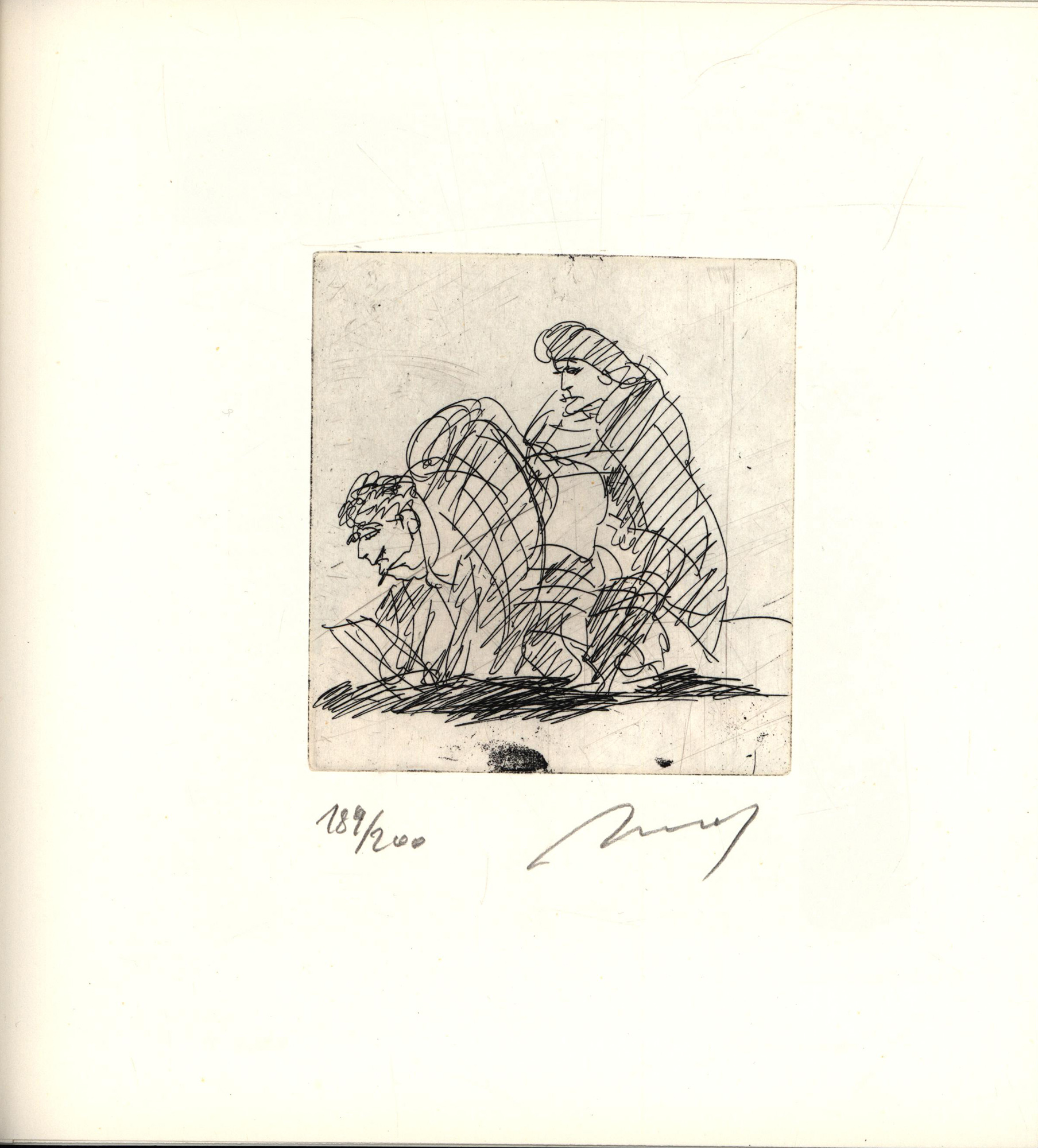 Vorzugsausgabe. Werkverzeichnis Lewin 979/985. Mit zwei eingebundenen signierten Original-Radierungen von Alfred Hrdlicka, nummeriert mit 189/200. Katalog anlässlich der Ausstellung in der Galerie Hilger, 26. Februar – 31. März 1985. Mit zahlreichen Abbildungen. Ecken minimal bestoßen, sehr gutes Exemplar.