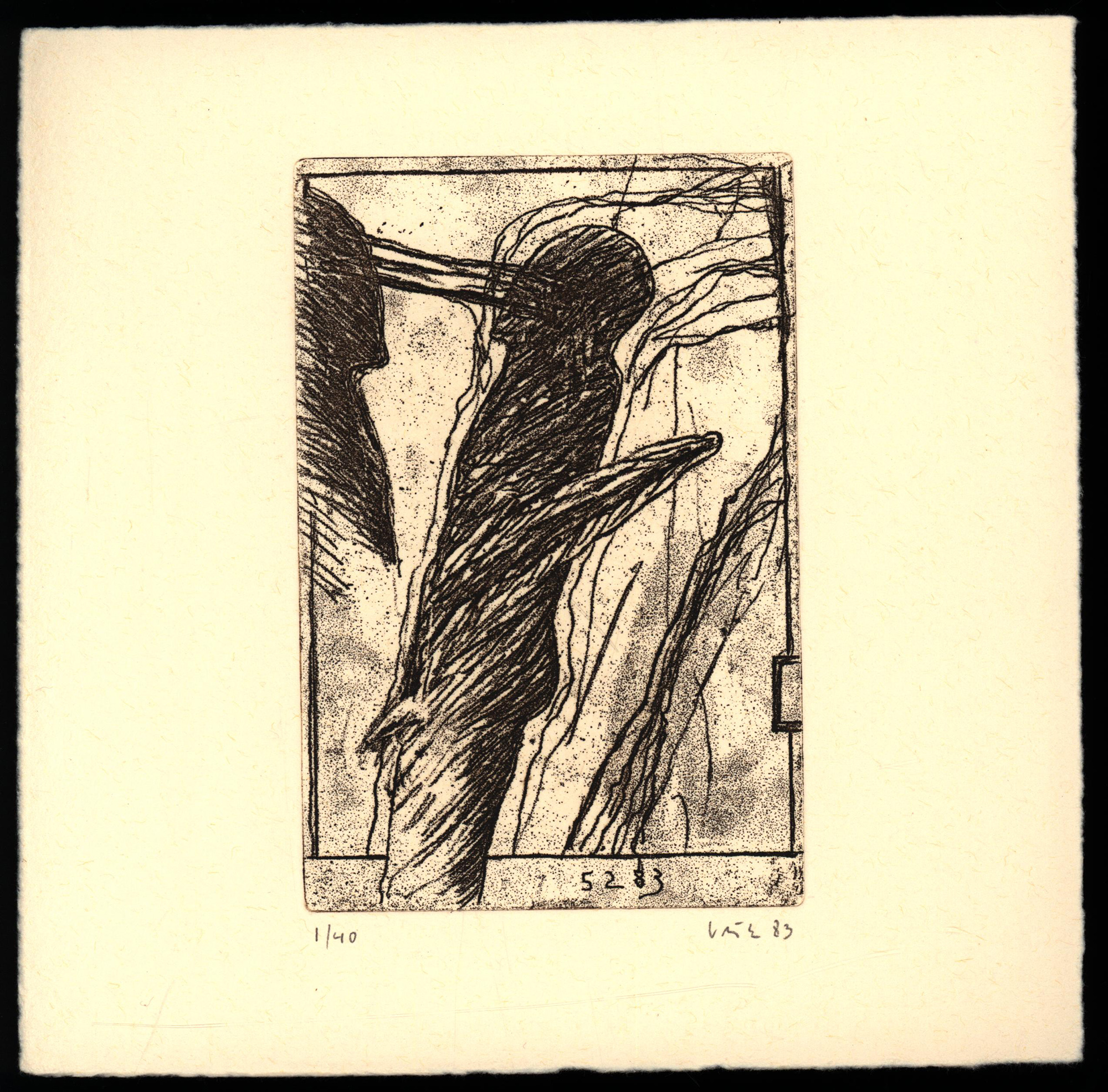 Vater, Axel: Vater. Geschichten vom Leben, von der Liebe und vom Tod. Zeichnungen. [Vorzugsausgabe mit signierter Original-Radierung]. Ratingen, Stadtmuseum, 1983. 8°. 21 x 22 cm. 60 Seiten, 3 Blatt. Original-Karton.