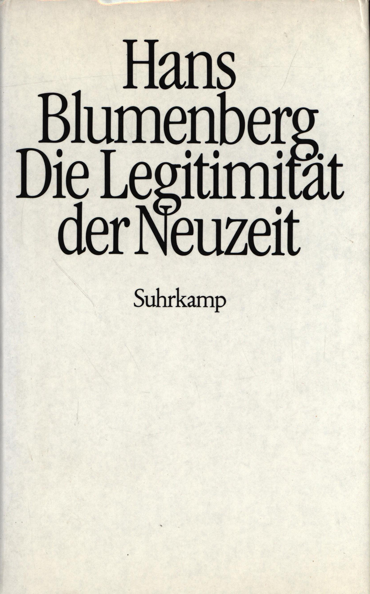 Blumenberg, Hans: Die Legitimität der Neuzeit. Erneuerte Ausgabe. Frankfurt am Main, Suhrkamp Verlag, 1997. Groß-8°. 23 x 14 cm. 707 Seiten. Original-Leinenband mit Original-Schutzumschlag.