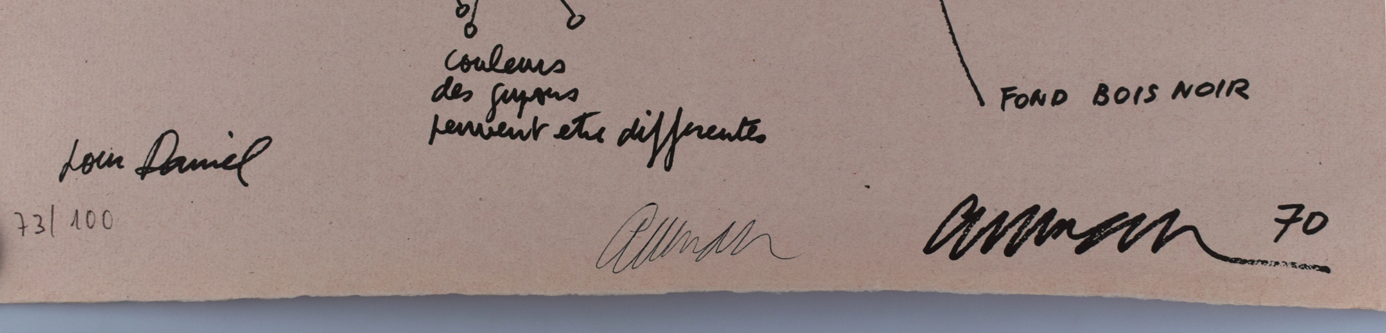 Number 73 of 100 multiples, an accumulation of marzipan doll legs in polyester tutus, on a black wooden panel in a Plexiglas box. With an enclosed lithograph with a sketch of the object and description. Numbered and signed by Arman in black below the image. The multiple was published in 1970 by the Eat Art Gallery, Daniel Spoerri, in Düsseldorf. The lithograph was printed by Carlo Schröter. Object dimensions: 33 x 27 x 8 cm. Lithograph dimensions: 62.5 x 44.0 cm. Lithograph with slight creases. Multiple in very good condition.