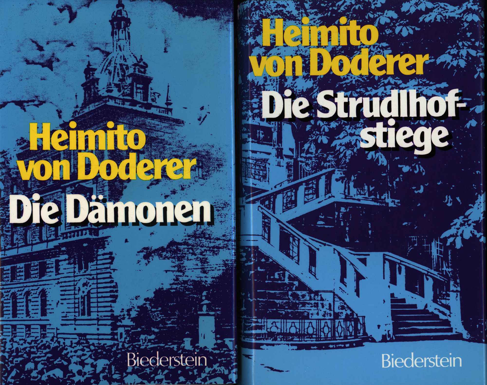 Doderer, Heimito von: Konvolut aus 2 Bänden. Band 1: Die Dämonen. Nach der Chronik des Sektionsrates Geyrenhoff. Roman. Band 2: Die Strudlhofstiege oder Melzer und die Tiefe der Jahre. Roman. 2 Bände. München, Biederstein, 1985. 8°. 21,0 x 13 cm. 1344 (1), 908 (1) Seiten. Original-Leinenbände mit Original-Schutzumschlägen. Kopffarbschnitte.