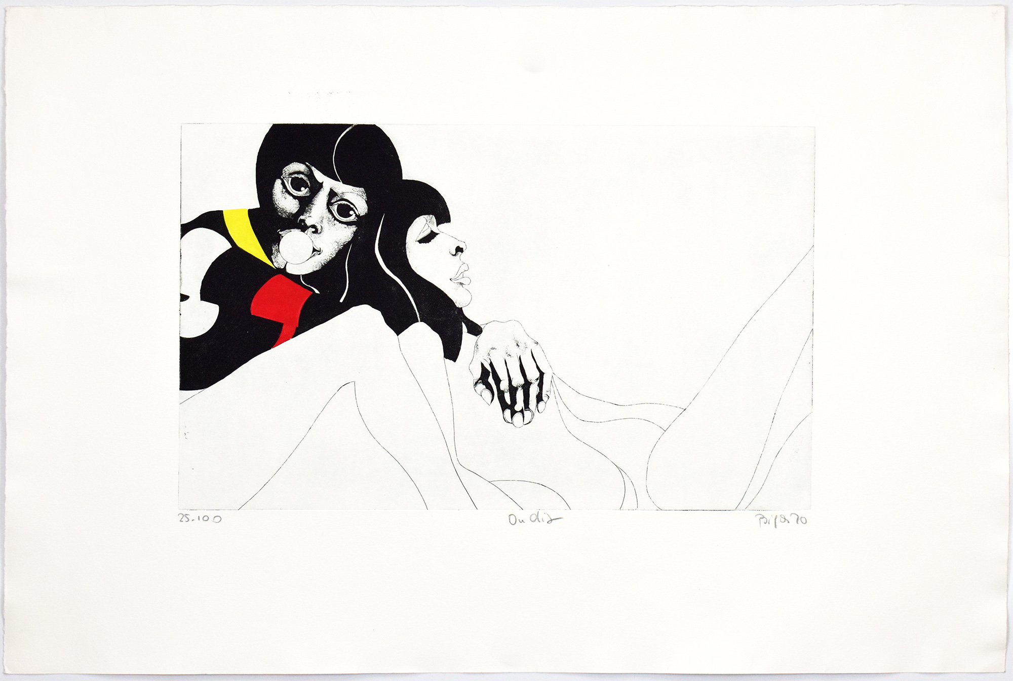 Bianga, On dit. [19]70. [Signierte Original-Radierung, handkoloriert].