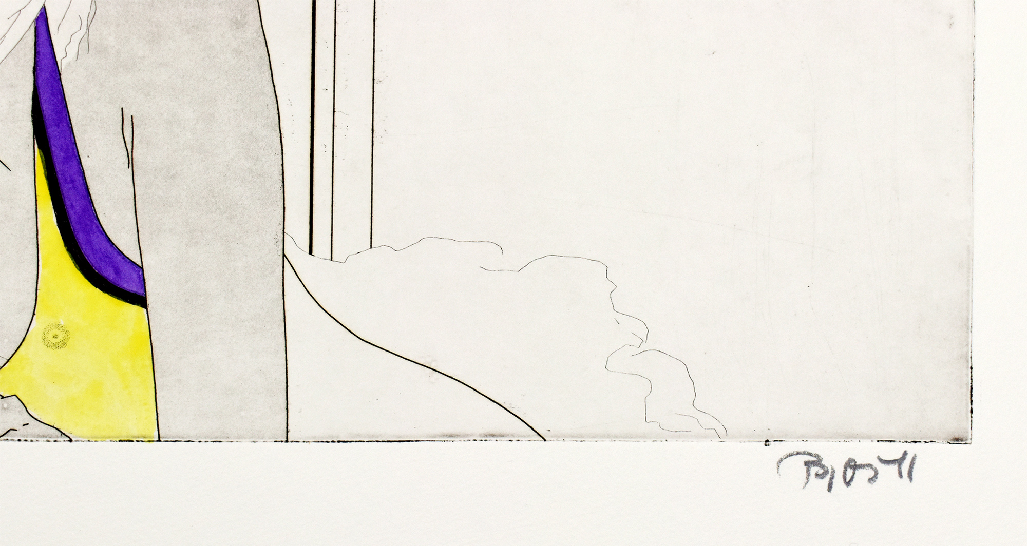 Bianga, Erotische Szene. [19]71. [Signierte Original-Radierung, handkoloriert].