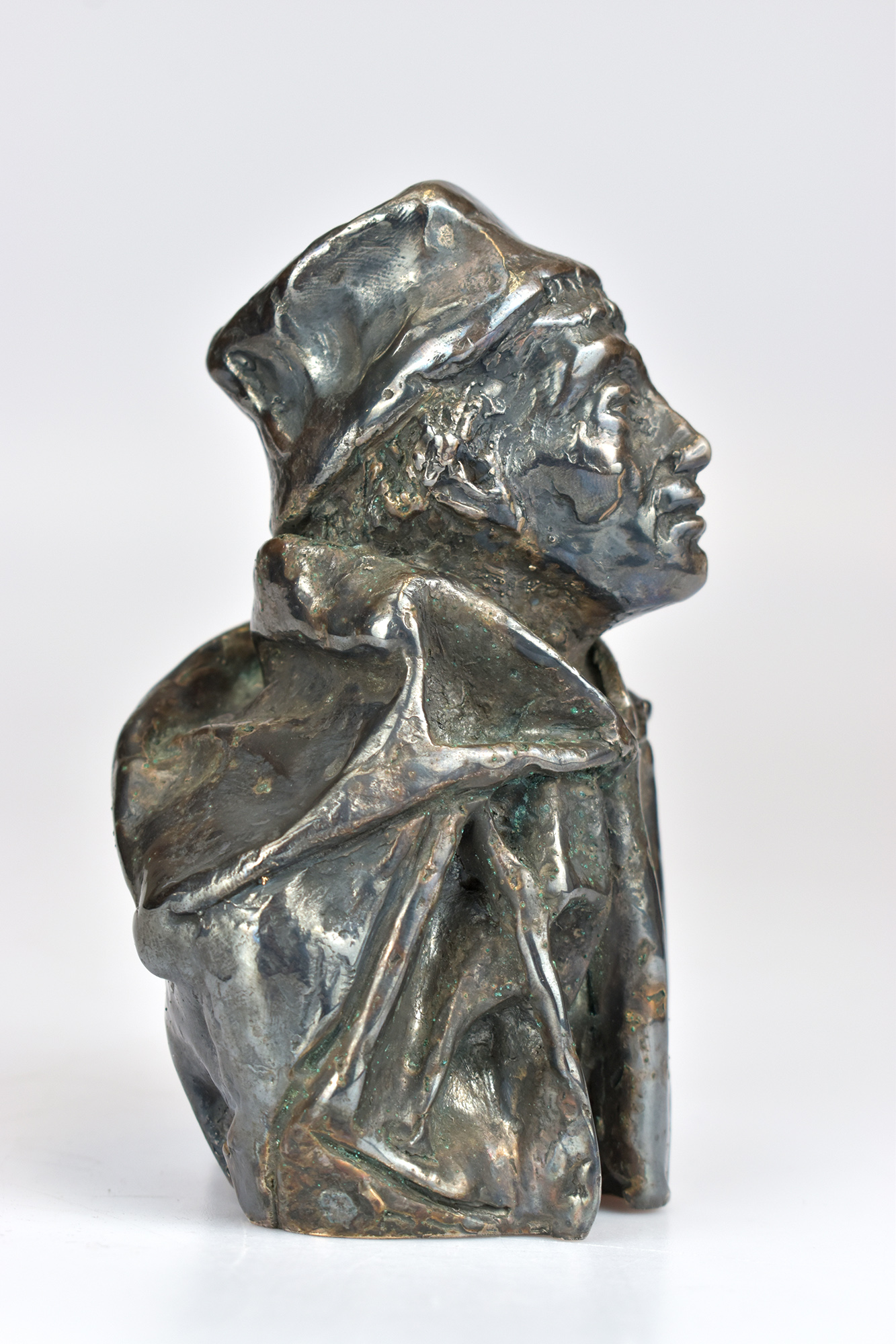 Gerresheim, Bert: Büste eines Mannes. [Eisengußplastik / iron sculpture]. (Bert Gerresheim, geboren am 8. Oktober 1935 in Düsseldorf, gestorben am 16.072025 ebenda. Deutscher Bildhauer, Grafiker und Pädagoge. 1956 bis 1960 Studium an der Düsseldorfer Kunstakademie bei Otto Pankok, zusammen mit Günther Uecker und Germán Becerra).