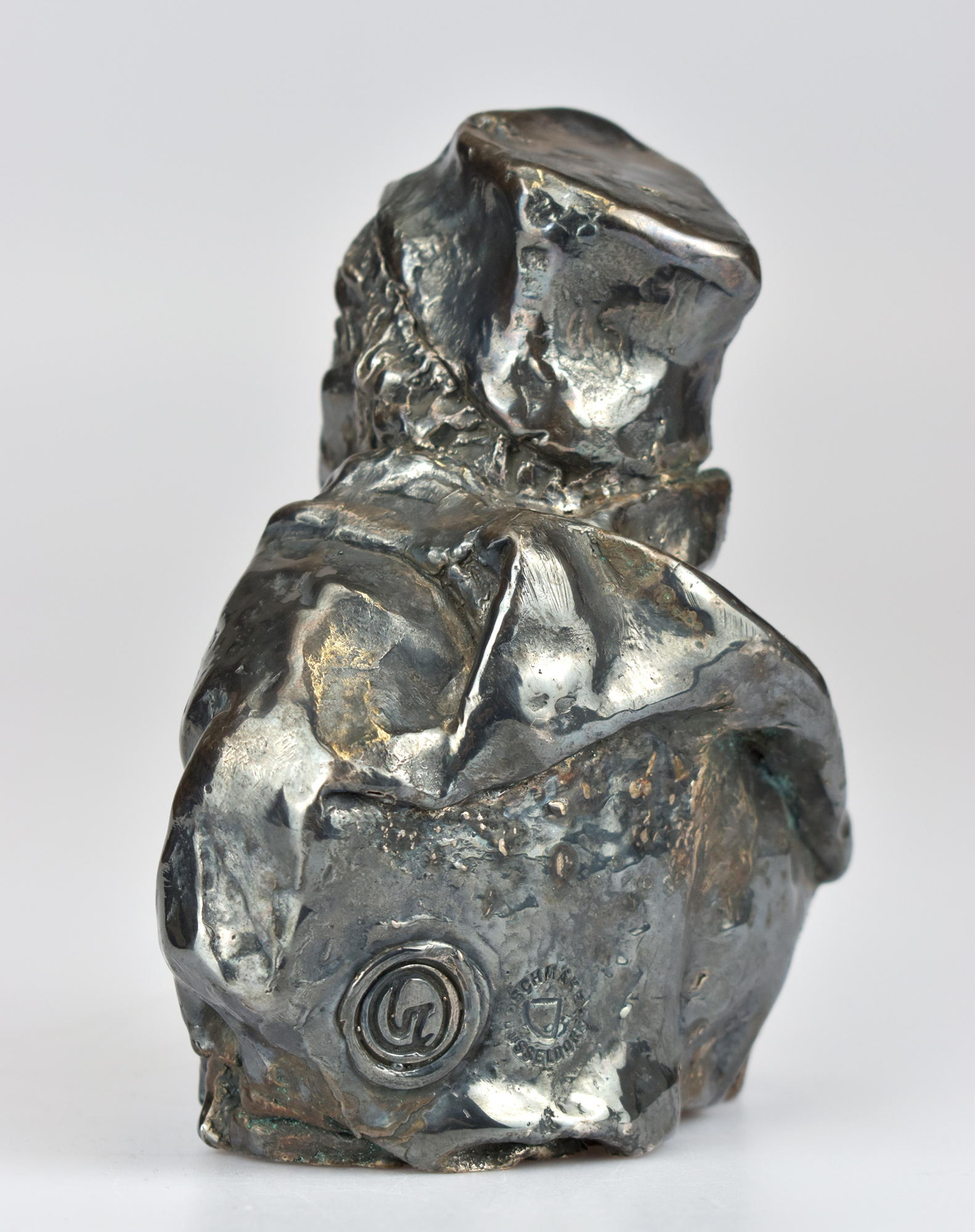 Cast iron sculpture with a silvery-dark patina. Bert Gerresheim’s signature stamp on the side of the cast, along with the foundry stamp (cast by Schmäke Düsseldorf). Dimensions: 15 x 12 x 8 cm. Weight: 2.01 kg. Very good, immaculate condition.