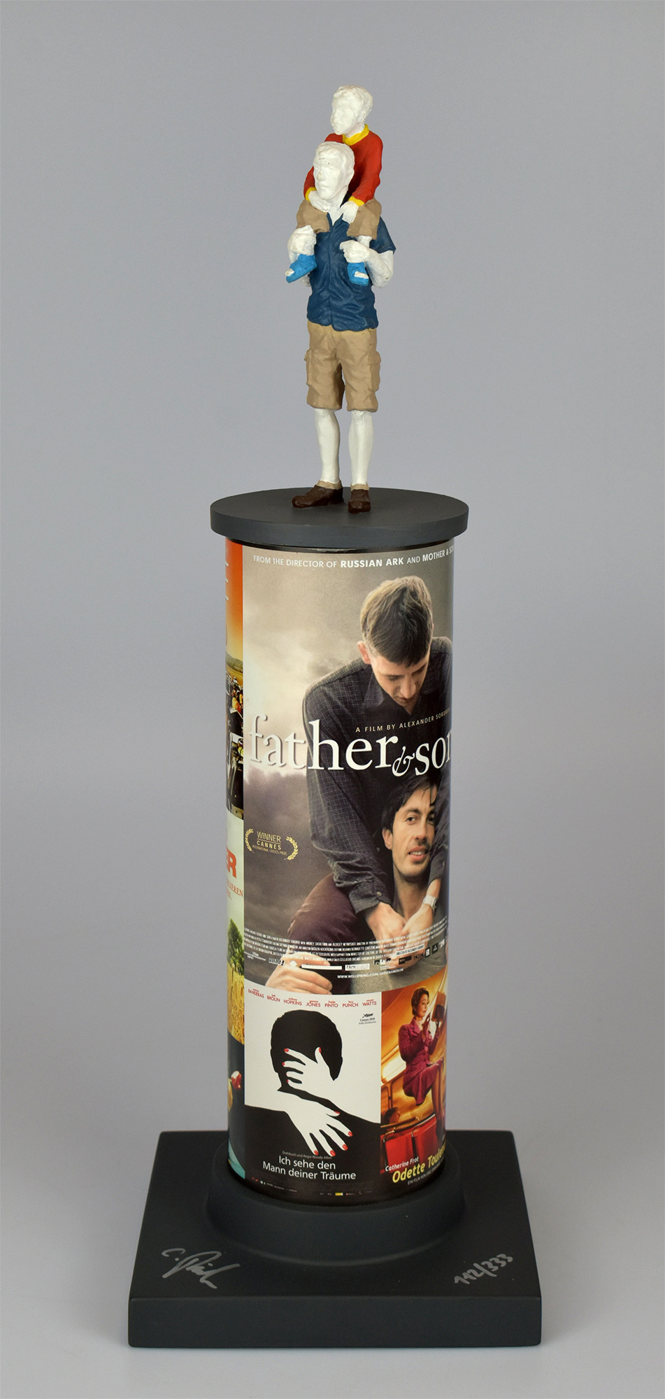 Number 112 of 333 plastic sculptures numbered at the pub and also signed in white by Christoph Pöggeler, depicting a father and son on an advertising column. Hand-painted sculpture. Dimensions: 46 x 15 cm. Weight: 1.39 kg. Very good condition.