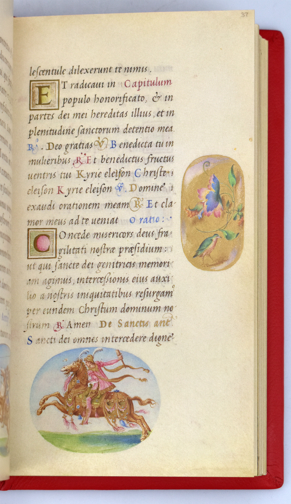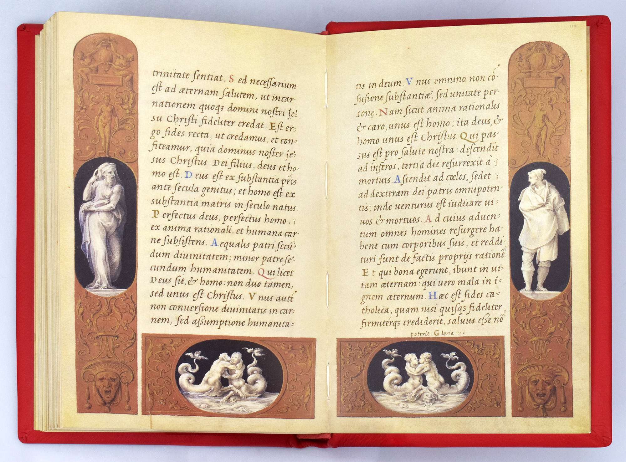 Farnese, Alessandro; Clovio, Giulio [Ill.]: Das Farnese-Stundenbuch. Mit Miniaturen von Giulio Clovio Croata. Vollständige Faksimile-Ausgabe der Handschrift MS M.69 der Pierpont Morgan Library New York. Kommentar / Commentary William M. Voelkle, Ivan Golub. Farnese book of hours. With illuminations by Giulio Clovio Croata. Complete colour facsimile edition of MS M.69 of the Pierpont Morgan Library New York. 2 Bände [Faksimileband und Kommentarband, komplett] Graz/Austria, Akademische Druck- und Verlagsanstalt, 2001. 8°. 18 x 12 cm. 243, 220 Seiten [112] Blatt. Original-Ganzlederband auf vier Bünden mit Rundum-Goldschnitt und Original-Leinenband in Original-Leinenkassette. (= Codices selecti, Volume 106).