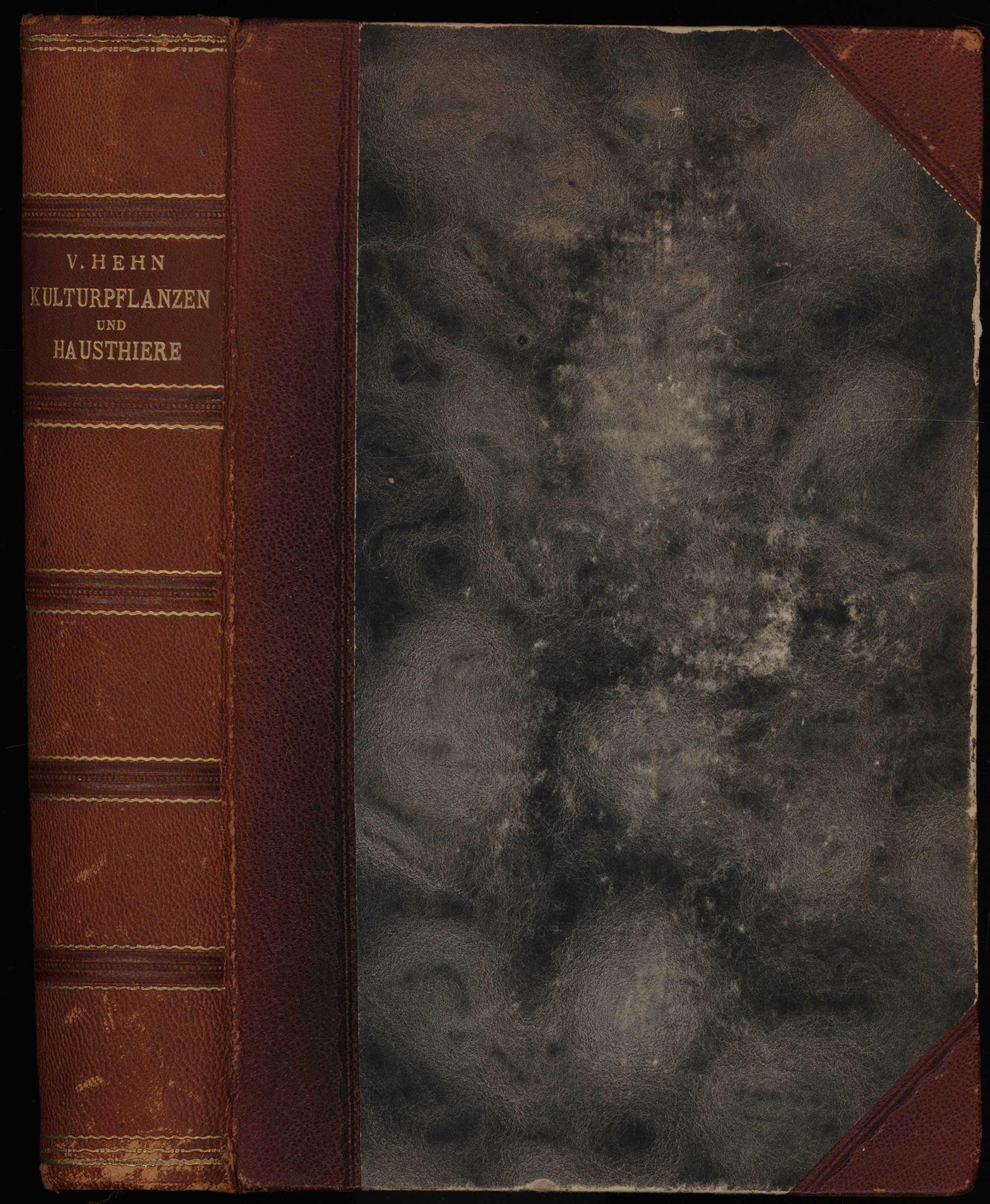Hehn, Victor: Kulturpflanzen und Hausthiere in ihrem Übergang aus Asien nach Griechenland und Italien sowie in das übrige Europa. Historisch-linguistische Skizzen. Mit botanischen Beiträgen von A. Engler. Berlin, Verlag von Gebrüder Borntraeger, 1902. Groß-8°. 24 x 17 cm. XXVI, 651 Seiten. Original-Halblederband mit goldgeprägtem Rückentitel und rotem Rundum-Farbschnitt.
