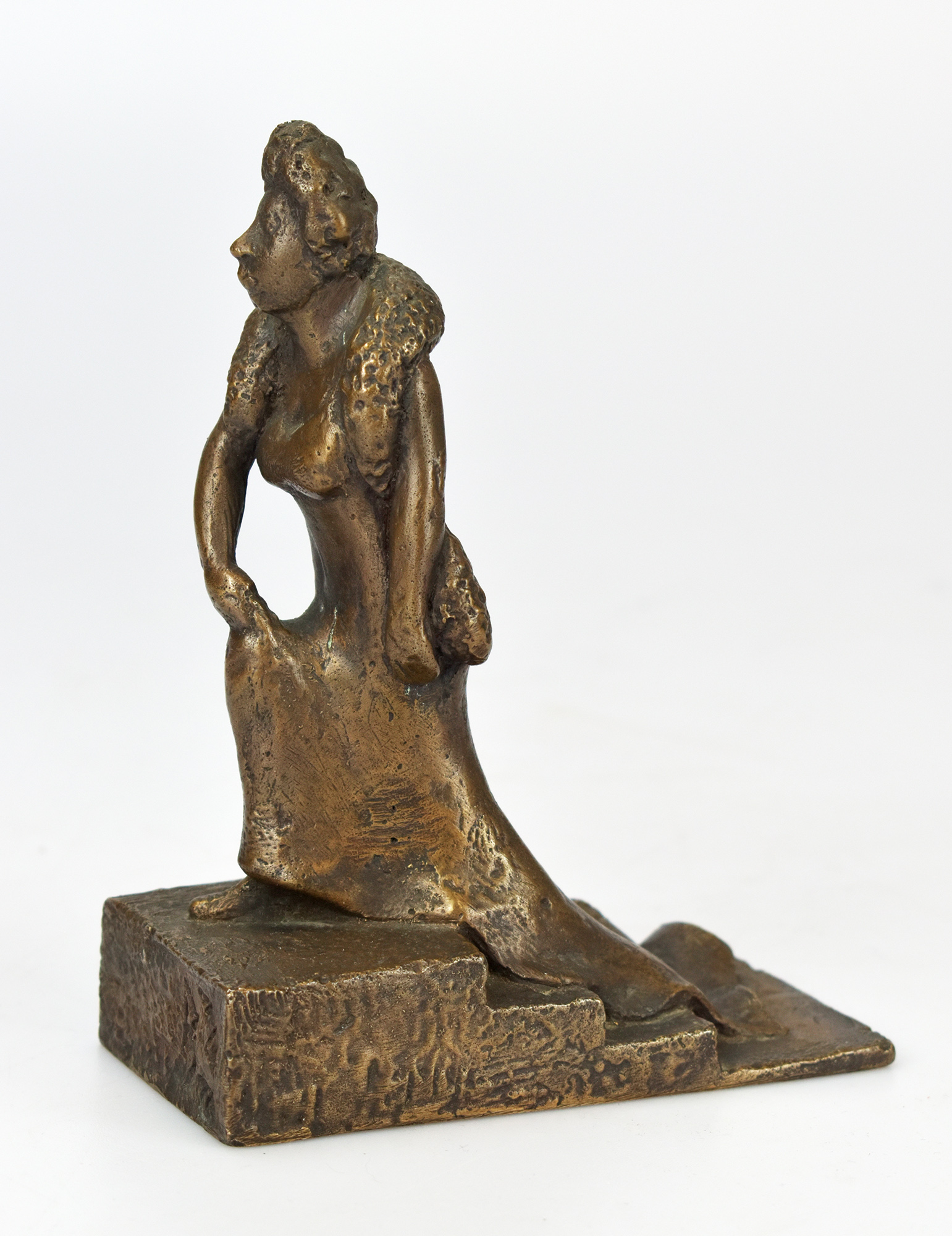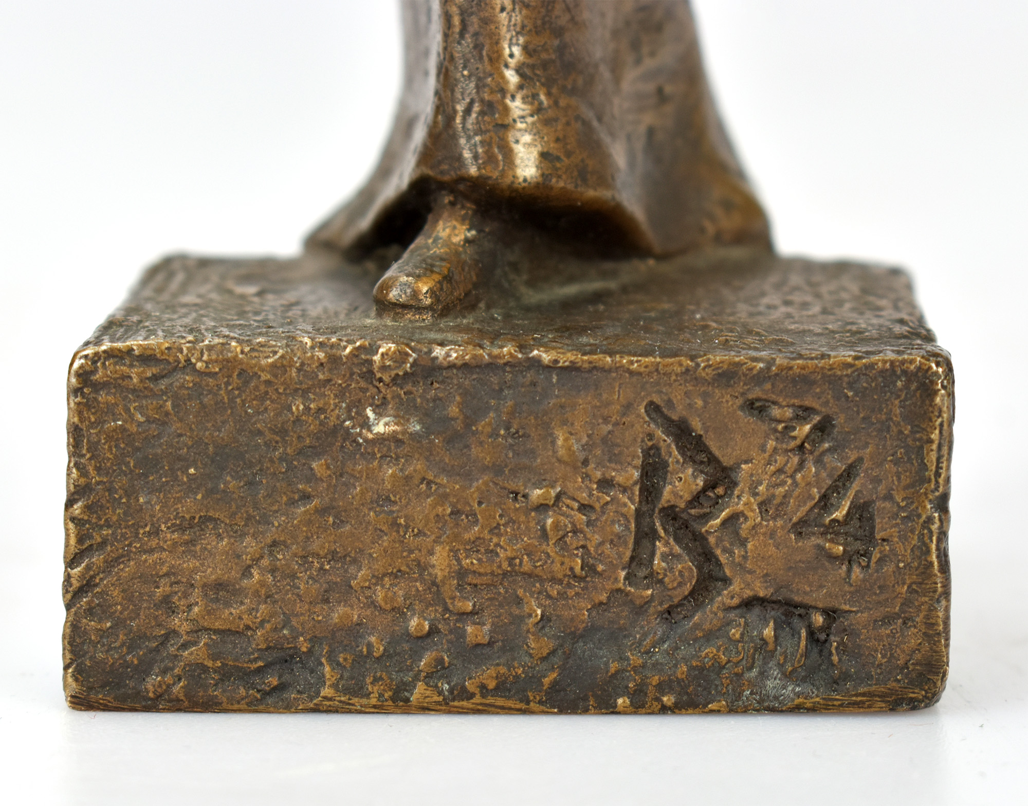 Bronzeplastik mit dunkler Patina, Exemplar 4 von 60, von Kurt-Wolf von Borries monogrammiert, nummeriert. Maße Höhe x Länge x Breite: 14 x 5,5 x 10,5 cm, Gewicht 0,65 kg. Sehr gutes Exemplar.