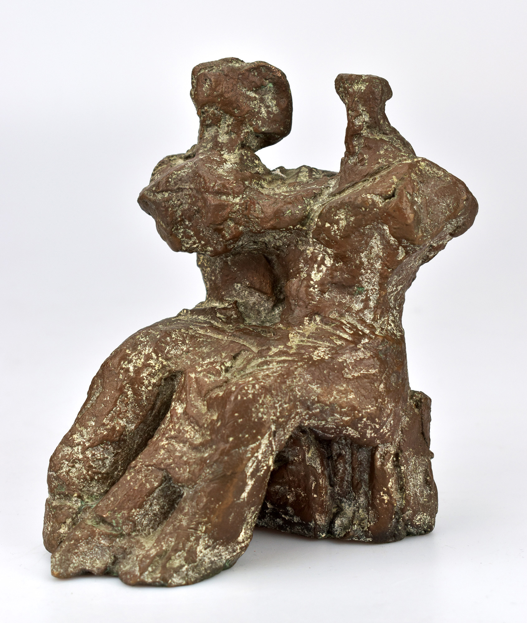 Bronzeskulptur mit dunkler Patina. Am Fuß im Guß Monogramm „BA“. Maße: 15 x 10 x 12 cm. Gewicht: 2,10 kg. Sehr guter Zustand.