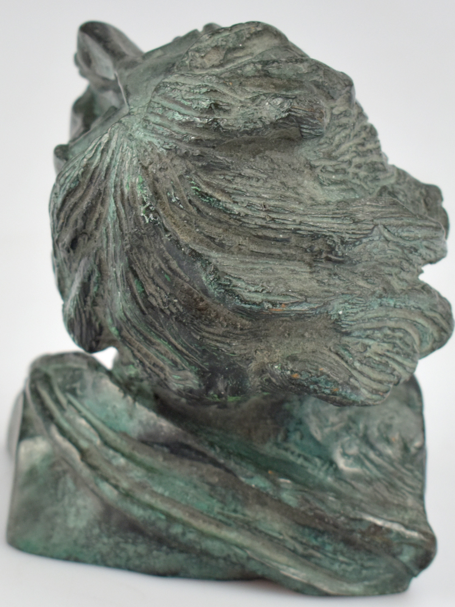Bronzeskulptur mit dunkler Patina. Nummer 2 von 6 Exemplaren mit eingeschlagener Nummer, im Guss seitlich mit Signaturstempel von Bert Gerresheim, sowie mit Gießereistempel Schmäke Düsseldorf versehen. Maße: 10 x 8,5 x 9 cm. Gewicht: 1,00 kg. Sehr guter Zustand.