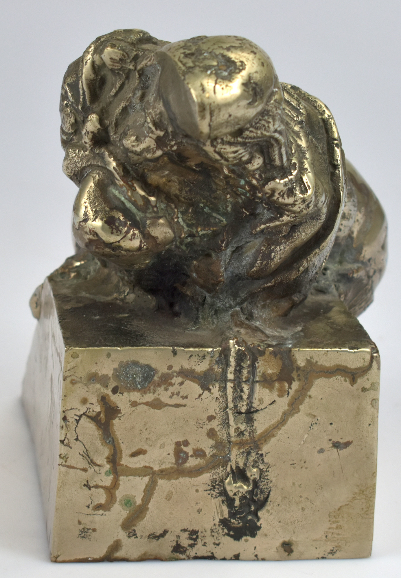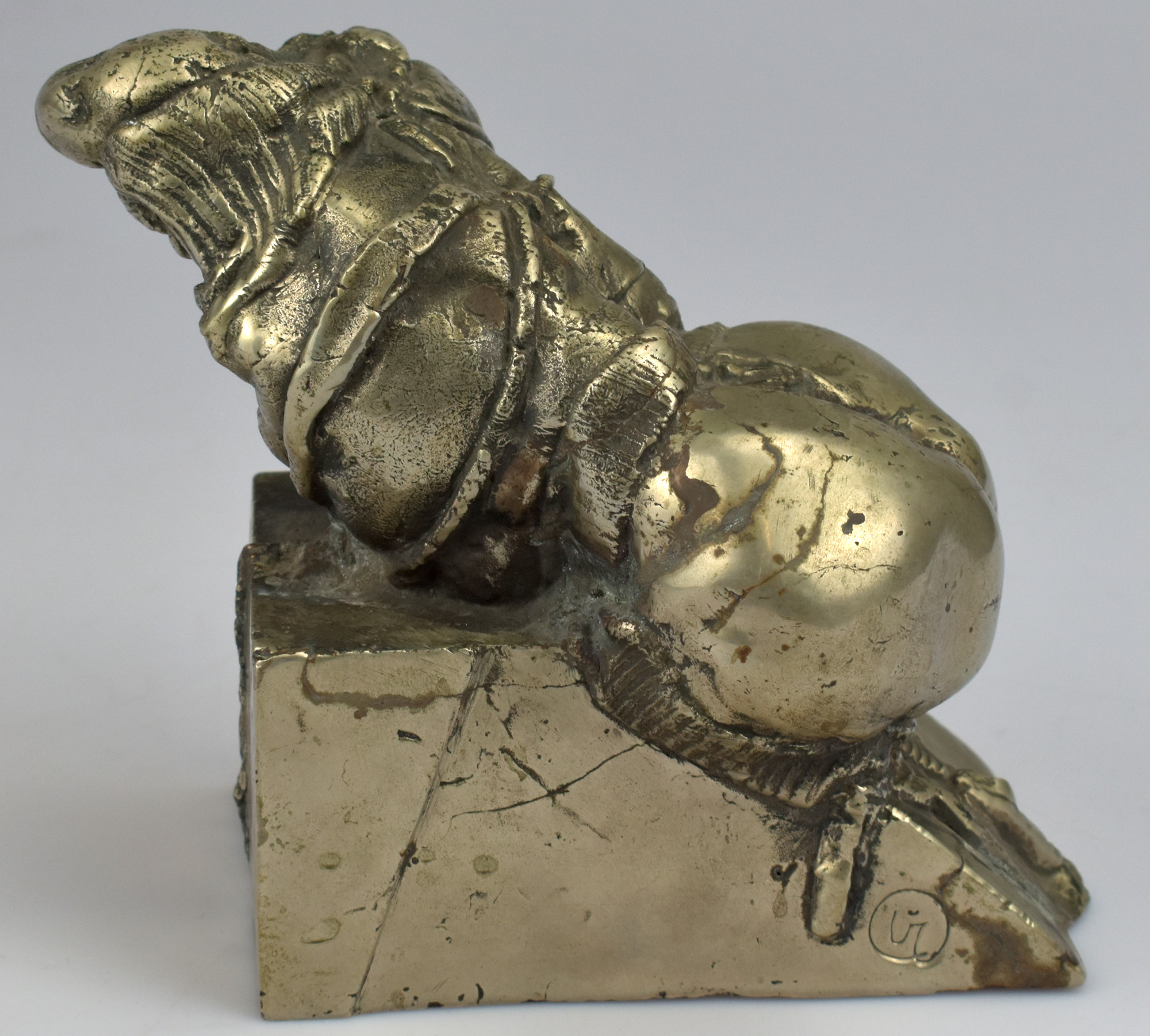 Bronzeskulptur mit glänzender Patina. Im Guss seitlich mit Signaturstempel von Bert Gerresheim. Maße: 16 x 15 x 10 cm. Gewicht: 2,18 kg. Sehr guter Zustand.