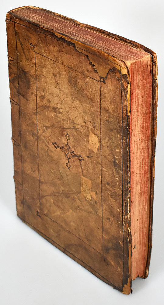 Suarez, Francisco: Ad primam secundae D. Thomae tractatus quinque theologici, quorum I. De ultimo fine hominis, ac beatitudine. II. De voluntario, & involuntario. III. De humanorum actuum bonitate, & malitia. IV. De passionibus, & habitibus. V. De vitiis, atque peccatis. Lugduni [Lyon], Sumptibus Iacobi Cardon, 1628. 2°. 37 x 23 cm. [6] Blatt, 453 Seiten, [10] Blatt. Fachmännisch restaurierter Ledereinband auf 4 Bünden mit Streicheisenlinien, papiernem Rückenschild und Rundum-Rotschnitt.
