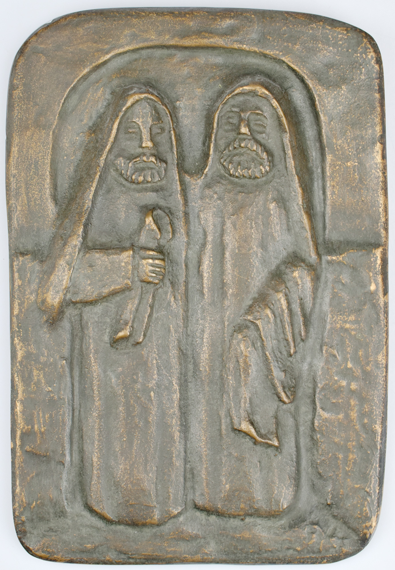 Viegener, Fritz: Zwei Heilige. 1971. [Bronzerelief / Bronze relief]. (Fritz Viegener, geboren am 31. Dezember 1888 in Soest, gestorben am 16. Oktober 1976 in Möhnesee-Delecke. Deutscher Maler und Bildhauer).