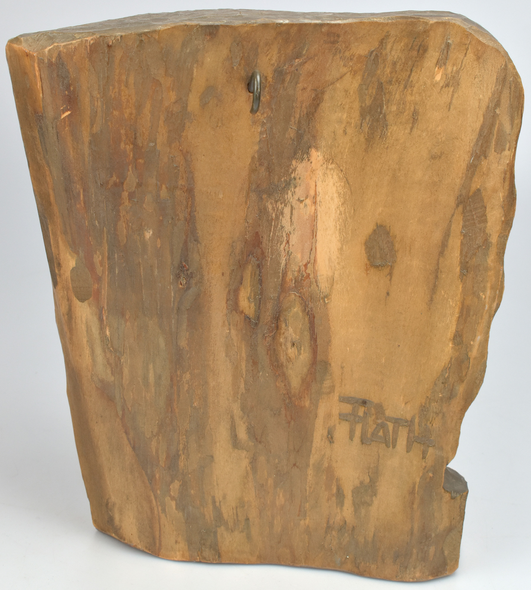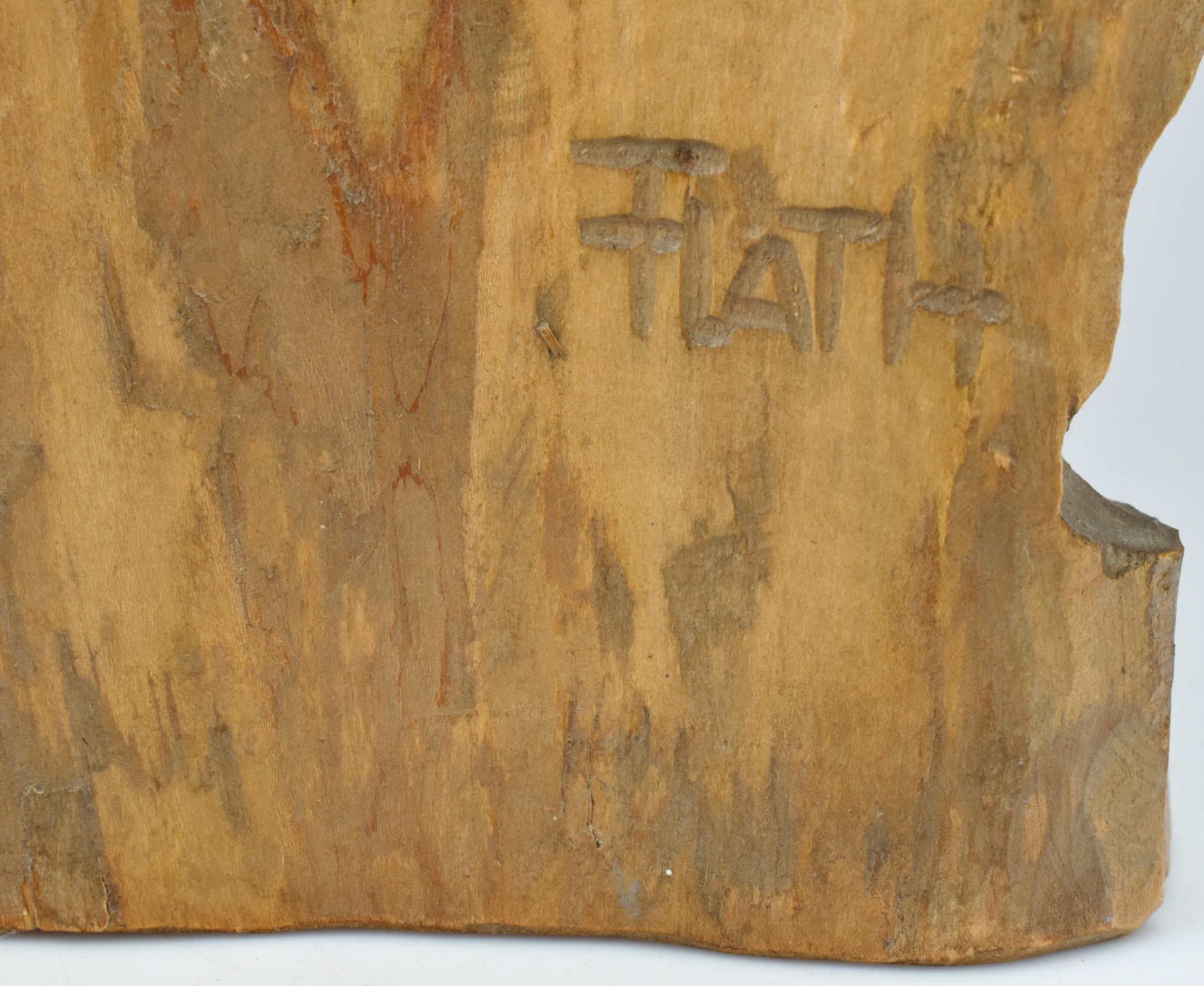 Holzskulptur, rückseitig mit eingeschnitzter Signatur von Otto Flath. Maße: 30,0 x 26 x 15,0 cm, Gewicht 2,80 kg. Sehr guter Zustand.