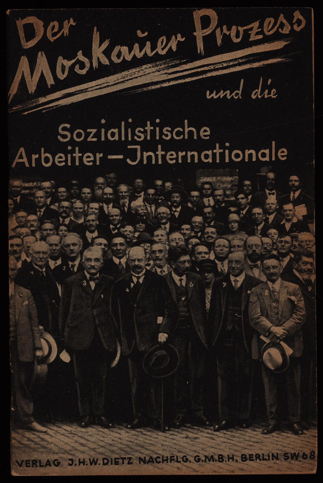 Adler, Friedrich (u.a.): Der Moskauer Prozess und die Sozialistische Arbeiter-Internationale. Berlin, Dietz Verlag, 1931. 8°. 20 x 13 cm. 47 Seiten. Klammergeheftete Original-Broschur mit illustriertem Vorderdeckel.