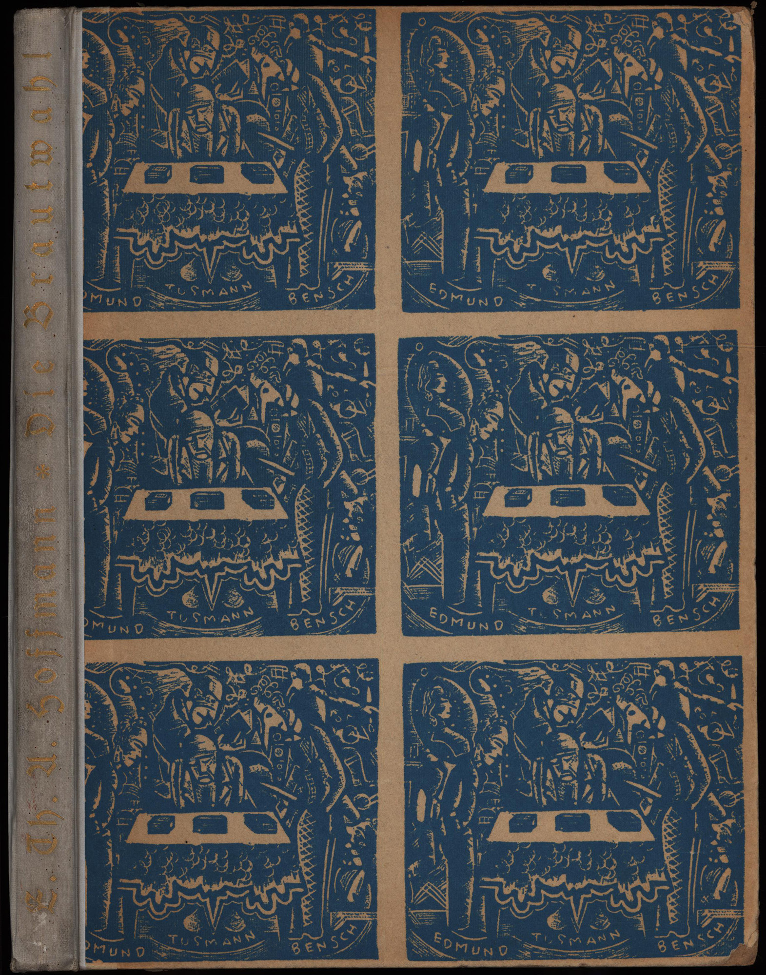 Hoffmann, E. Th. A. – Rössing, Karl: Die Brautwahl. Mit 31 Holzschnitten von Karl Rössing. Regensburg, Habbel Verlag, 1921. Groß-8°. 25 x 18,5 cm. 100 Seiten. Original-Halbleinenband mit goldgeprägtem Rückentitel und gelbem Kopfschnitt.