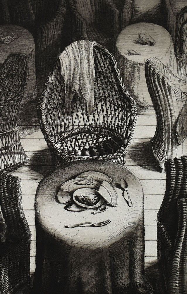 Escher, Rolf: Saison-Ende. [19]81. [Signierte Original-Radierung / signed original etching]. (Rolf Escher, geb. 1936 in Hagen. 1956 bis 1962 Studium an der Kunstakademie Düsseldorf).