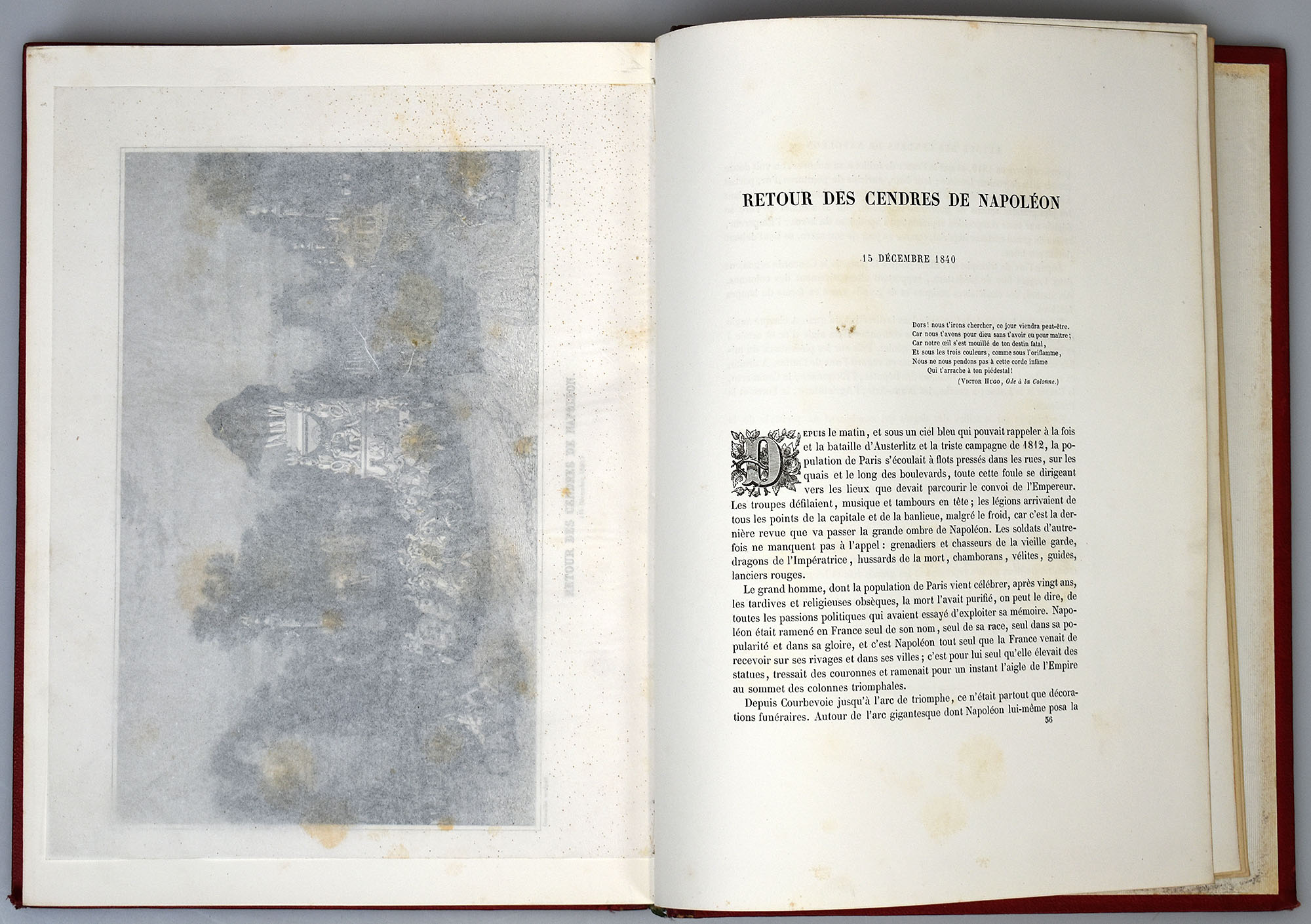 Musée de Versailles, ou, Tableaux de l’histoire de France. Avec un texte explicatif d’après nos meilleurs historiens Henri-Martin, Michaud, Burette, etc. Paris, Furne et Cie, Libraires-Éditeurs, 1858. 4°. 32 x 25 cm. IV, [117] unpaginierte Blatt. Original-Halblederband mit goldgeprägtem Rückentitel, Rundum-Goldschnitt und Lesebändchen.