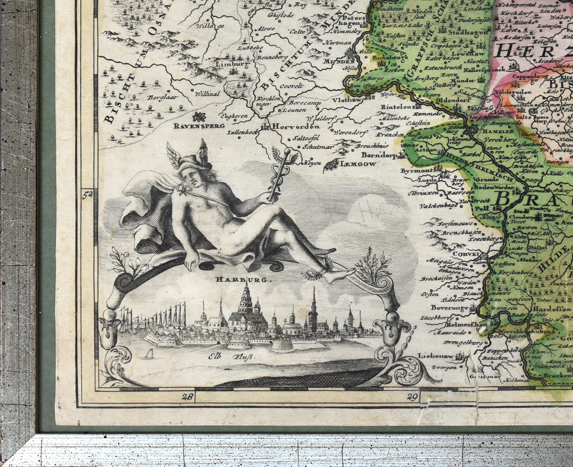Homann, Circulus Saxoniae Inferioris. Altkolorierter Kupferstich, gerahmt