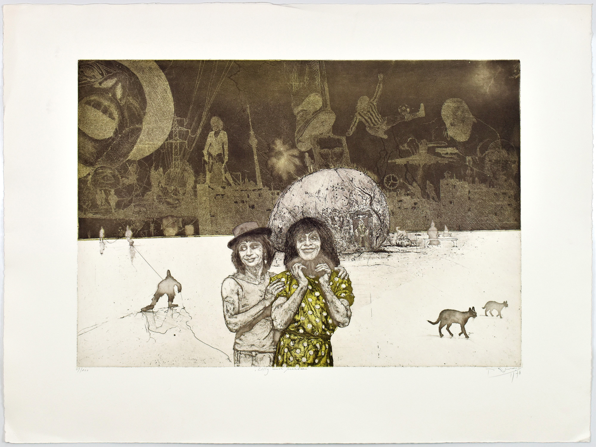 Schneider, Jochem Roman: Lilly und Marleen. 1970. [Signierte Original-Grafik / signed original graphic art print]. (Jochem Roman Schneider, geb. 1951, deutscher Künstler).