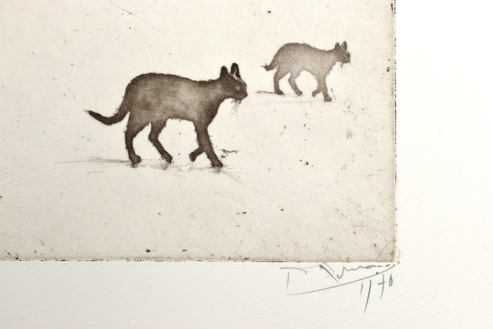 Number 69 of 100 numbered original graphic art prints by Jochem Roman Schneider on laid paper, titled, numbered, signed and dated (1970) below the picture. Sheet dimensions: 59.8 x 79.0 cm. Dimensions illustration: 42.0 x 59.5 cm. The upper margin and the upper corners with some crease marks, both lower corners with each one crease mark. Sheet a bit spotted on the backside. Overall good condition.