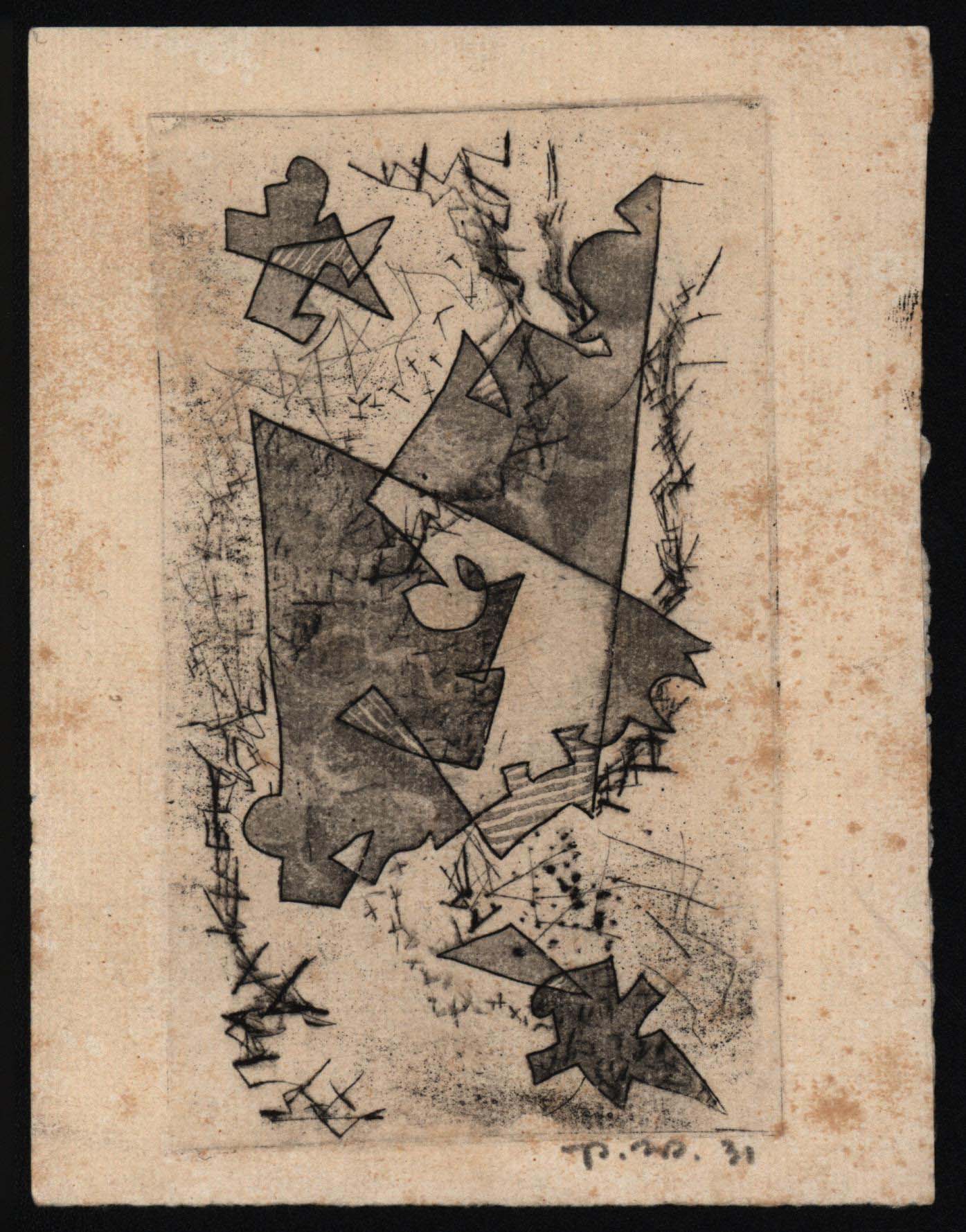 Weisshuhn, Paul: Abstrakte Komposition. (1931). [Signierte Original-Radierung / signed original etching].