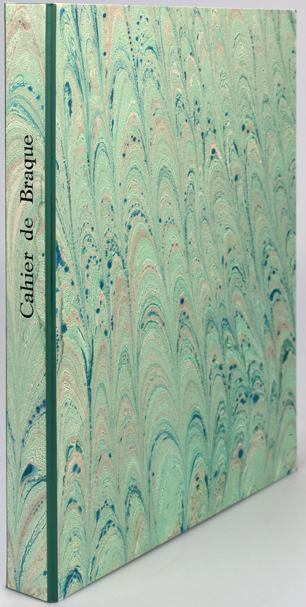 Braque, Georges: Cahier de Georges Braque 1917-1947. Paris, Maeght Editeurs, 1948. Groß-4°. 39 x 28,5 cm. [54] Blatt lose eingelegt in Original-Broschur mit farblithografiertem Original-Schutzumschlag. Dekorativer Pappkassette mit Buntpapierbezug.