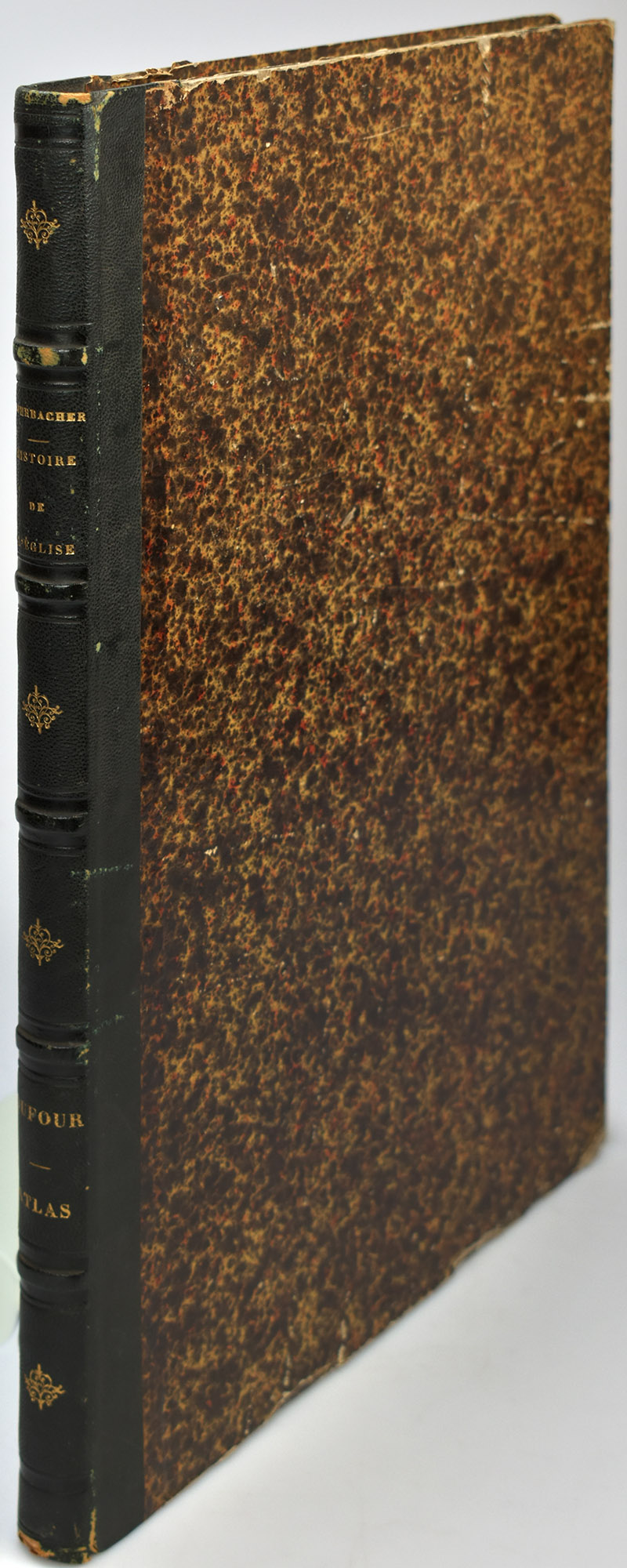 Atlas géographique dressé pour l’histoire universelle de l’Eglise catholique de l’abbé Rohrbacher. Paris, Verlag Gaume frères et Duprey, 1864. 2°. 44 x 31 cm. [2] Blatt und 24 Karten. Halblederband der Zeit auf 5 Bünden mit goldgeprägtem Rückentitel, marmoriertem Deckelbezug und Rundum-Sprengschnitt.