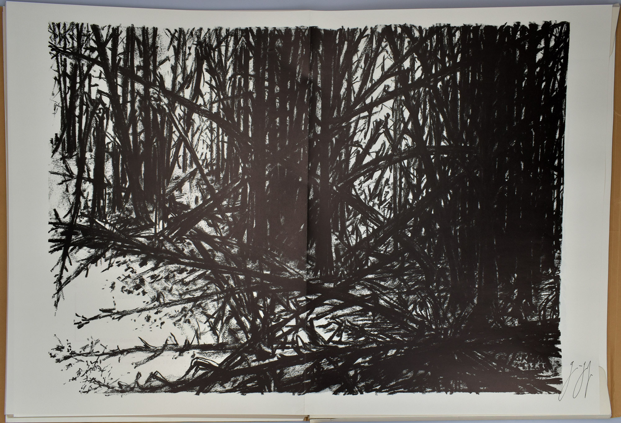 [12] pages and 25 posters, loosely inserted in original cardboard portfolio. Comprising a total of 25 posters, all signed in ink by Günter Grass, 8 of them folded and one mounted on board, along with the accompanying booklet Günter Grass: Totes Holz. „Du bist der Augenzeuge. Sonst ist niemand hier.“, also signed on page 3. Portfolio slightly bumped with minor delaminations along the folds. Posters with minimal creasing to some corners, otherwise fine copy.